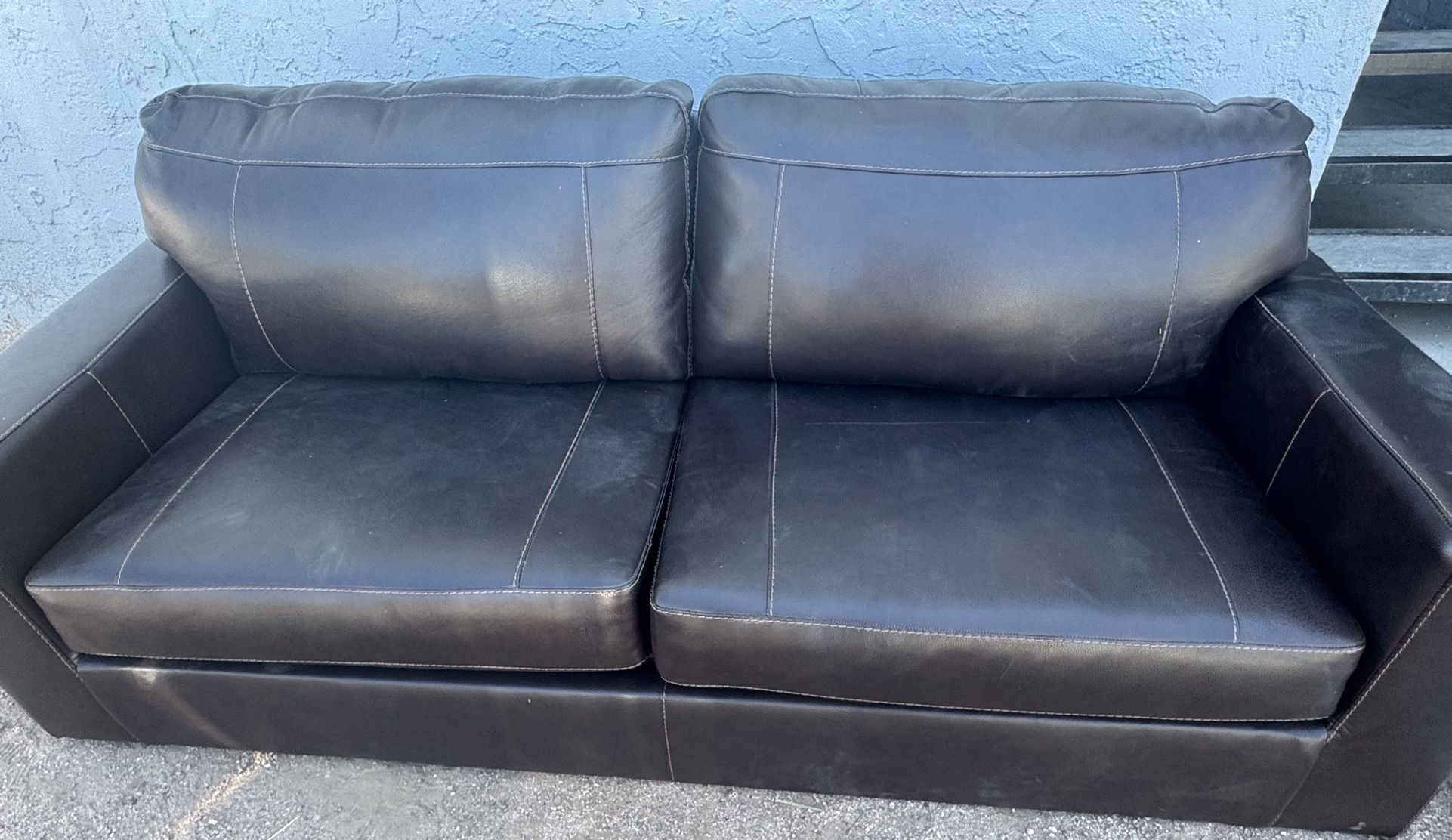 Leather Couch W Full Size Bed