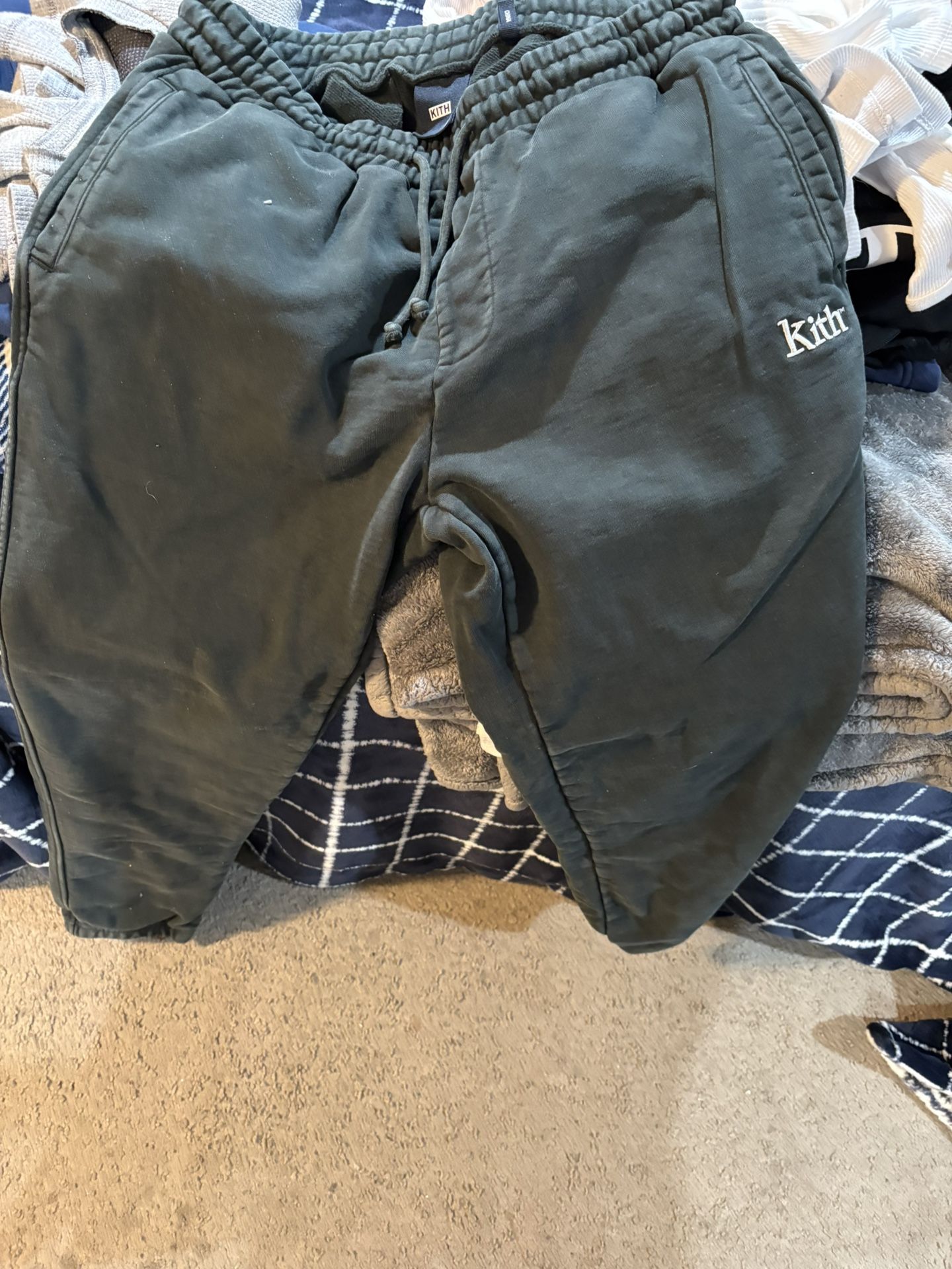 Men’s Kith Jogger Sweat Pants MENS SIZE MEDIUM Black faded color thick material very comfortable , worn a handful of times good condition Local buyers will deliver Serious inquiries only please. Asking $20 will discuss price if need be