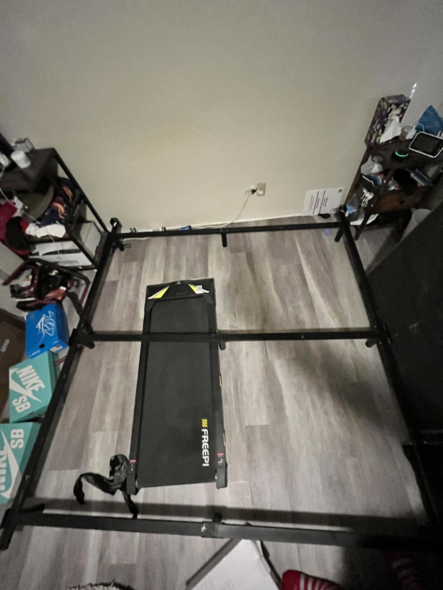 Was going to try and sell it but you are doing me the favor by taking it so it’s a fair trade in my eyes. Bed frame is broken down and in a box ready to go. Nothing was wrong with it the wife just wanted a new one. If no one picks up by Friday I’m throwing it in the trash.