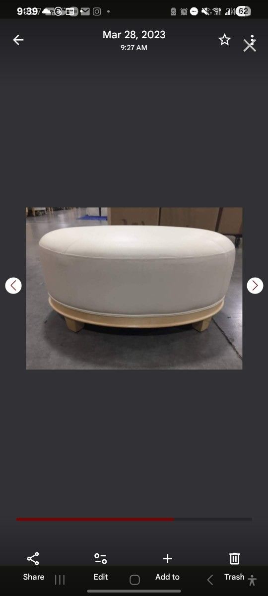 Cream Leather Ottoman Oval