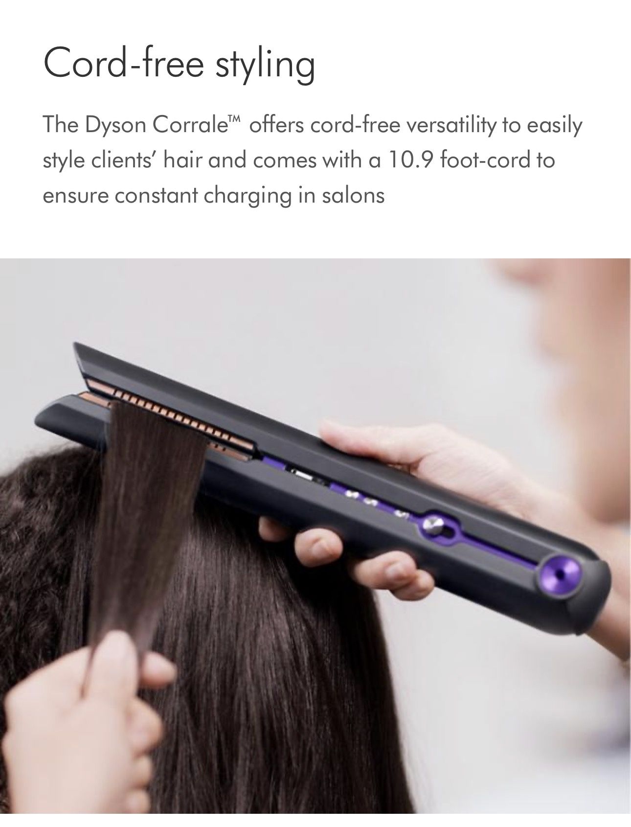 Dyson Corrale CORD-FREE hair straightener - Cordless, travel friendly, on the go hair straightener. Used twice - like new Perfect condition in original packaging with all accessories and user guides Originally Purchased for over $550 after tax Achieve salon-quality styling with the Dyson cord-free hair straightener. Sleek black and purple design for easy handling.