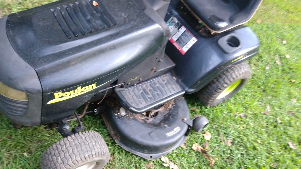 530 cash----poulan riding mower ,runs and mows .good battery .Has 2 brand new deck spindles and bearings installed on deck .runs ,and cuts great .the pictures are from 2 weeks ago.just installed spindles on Sept 17th.