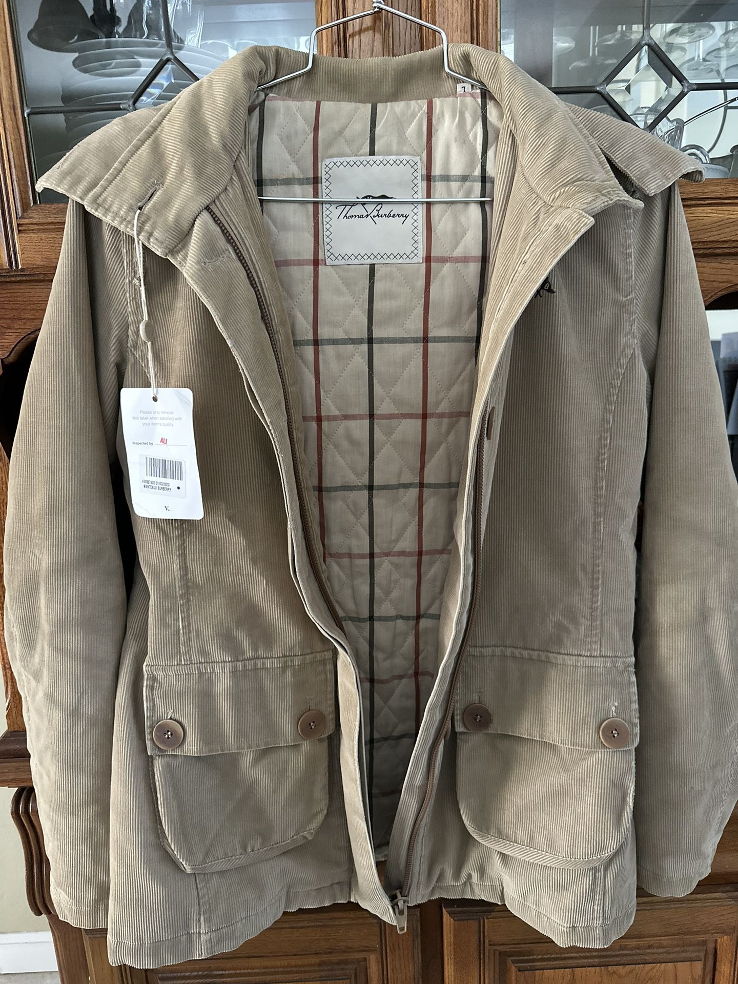 Size Large (medium true to size) Beige/Camel color Corduroy fabric on the outside and lining on the inside Product condition (10/10) Removable Hoodie No lint, balls, hair or loose threads on the fabric Warm, perfect for between seasons and winter Authenticated Tag included Cash payment available - meet-up