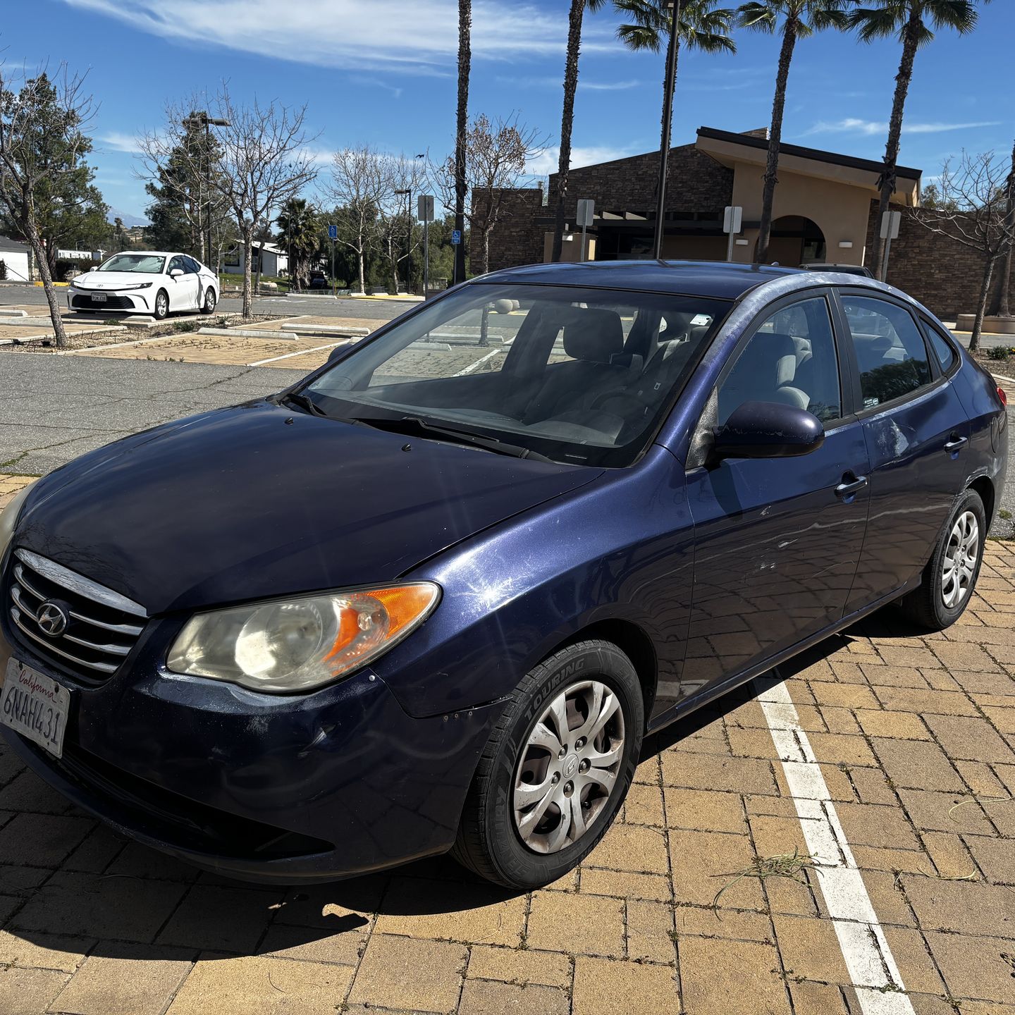 2010 Hyundai Elantra with current tags a clean pink slip that is running and driving great with ice cold AC working power windows and working radio. The tags expire in August this year it is automatic and a great gas saver it does have stains but no major rips and there is a check engine light on but the car is my aunt's and she's just asking me to help her sell it and she does not want to repair anything else and we do not know why the check engine light is on but you're welcome to bring a scanner or a mechanic. She just moved to Victorville and the card drove yesterday from Victorville to Perris with no issue.
