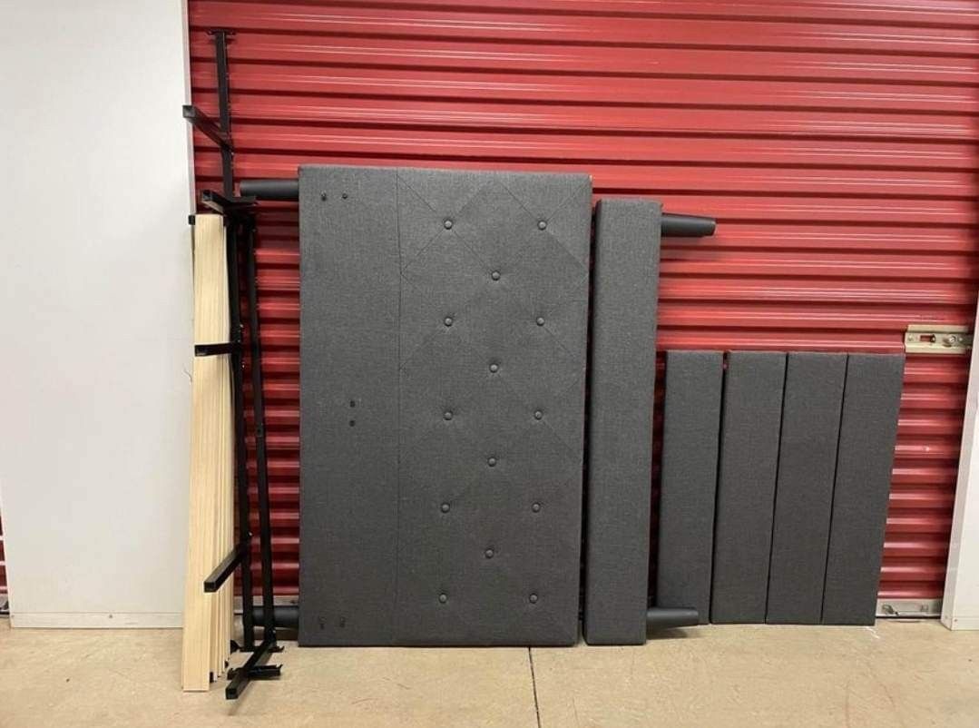 Description $150 In excellent condition ready for pick up! Zinus Shalini 41" Upholstered Platform Bed Frame, Dark Grey, Full . GOOD LOOKS, CONFIDENT STYLE -With its easy-as-pie assembly, sturdy construction and elegant diamond pattern stitching, the Shalini stands the test of time and makes a stunningly chic addition to your bedroom . DURABLY DESIGNED - Interior steel framework and dense foam padding add comfort and longevity; twin size supports a maximum weight capacity of 350 Ibs, while all other sizes can support up to 700 Ibs . NO BOX SPRING NEEDED - Durable wood slats support and extend the life of your latex, memory foam or spring mattress without the need for a box spring; for the twin and full sizes, slats are spaced 2.7 inches apart, and for other sizes, slats are spaced 3.2 inches