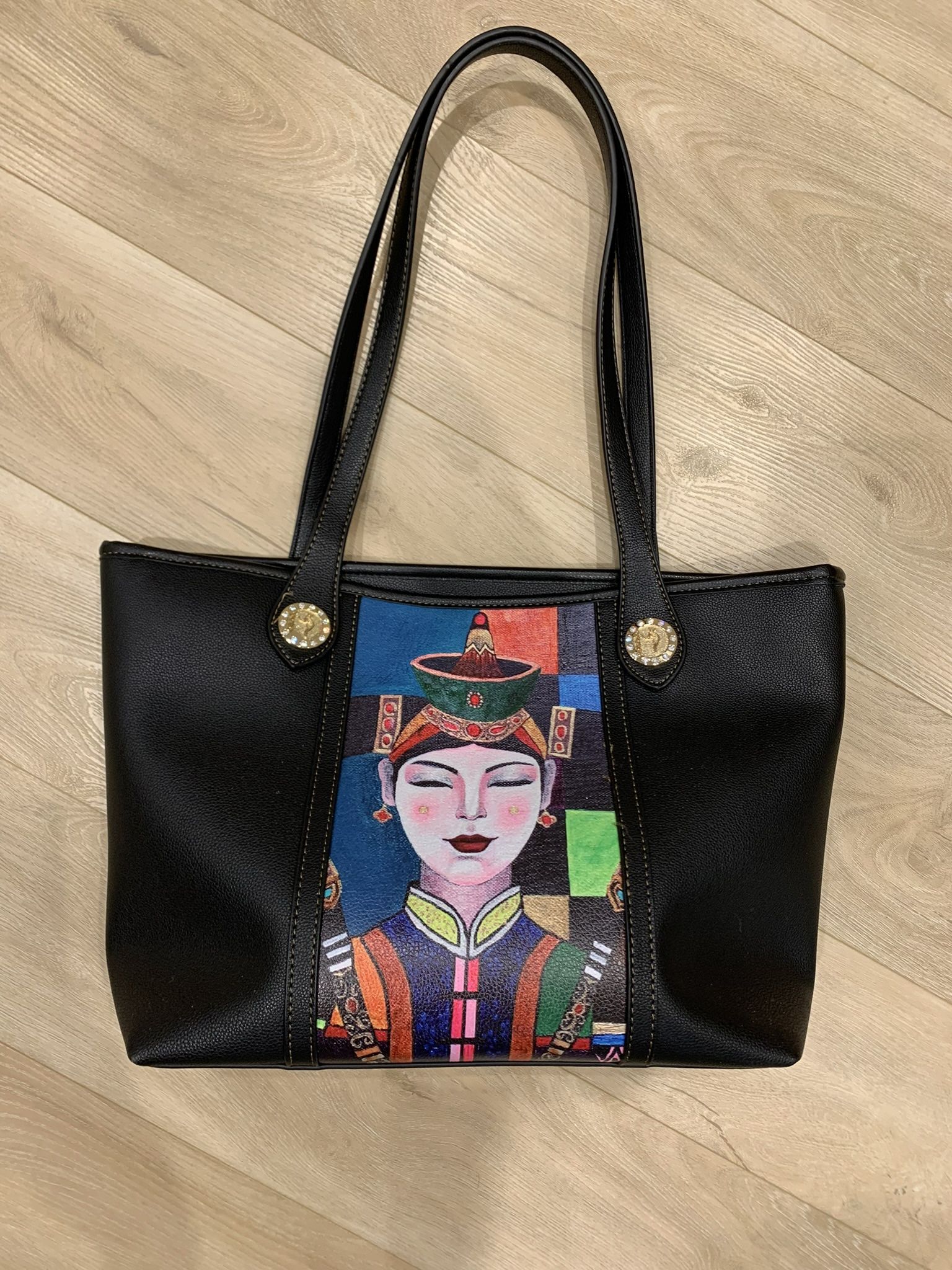 Leather tote bag Mongolian Queen portrait bag