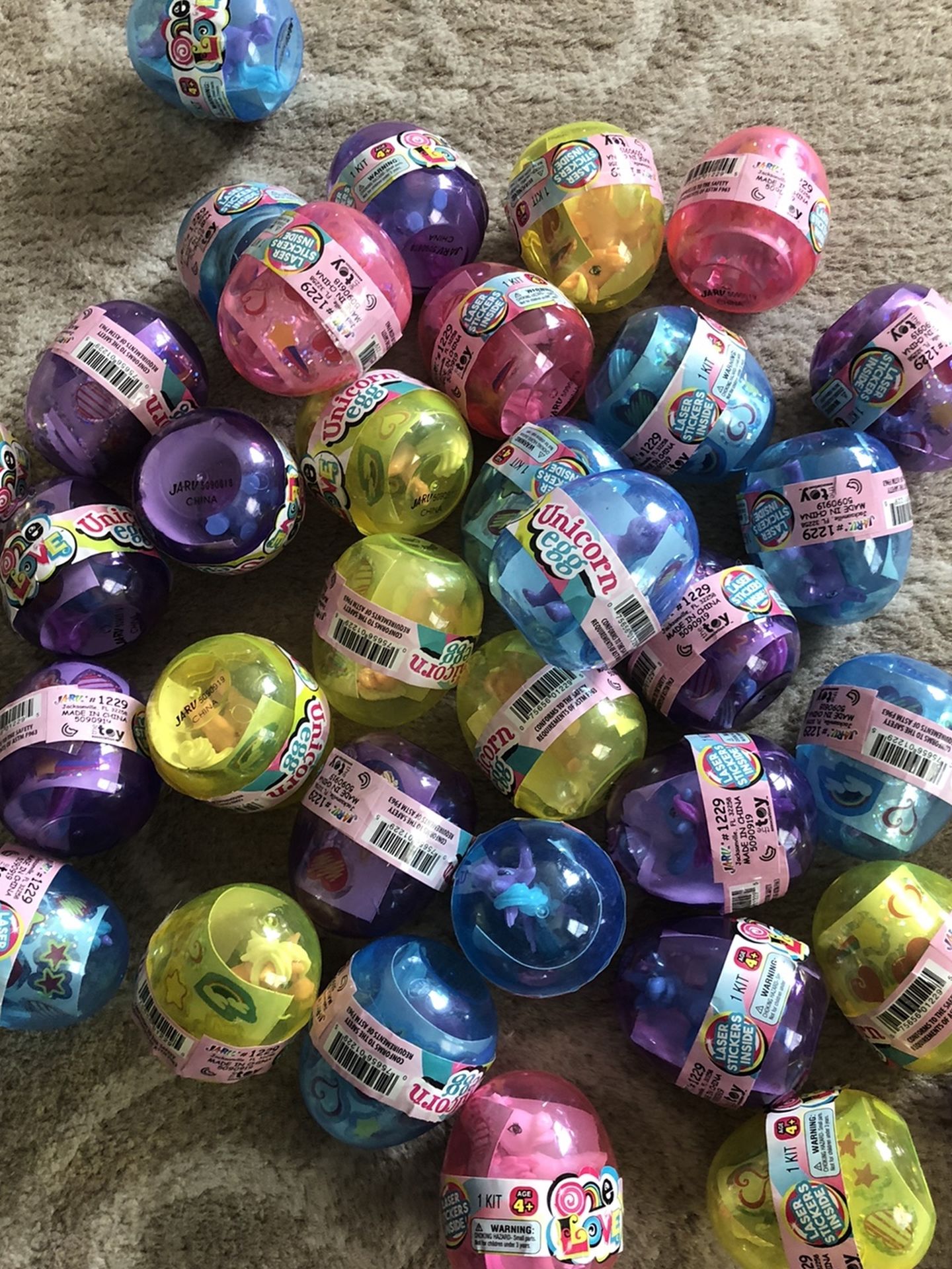 Unicorn and lasered stickers in plastic egg