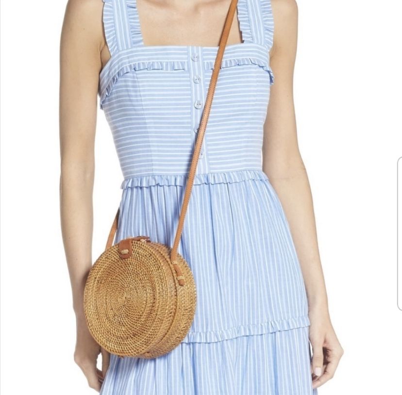 New boho wood straw round bag - in style summer bag, perfect size to carry your phone and some make up, modern and is the it bag this summer. Made in Vietnam Priced to sell