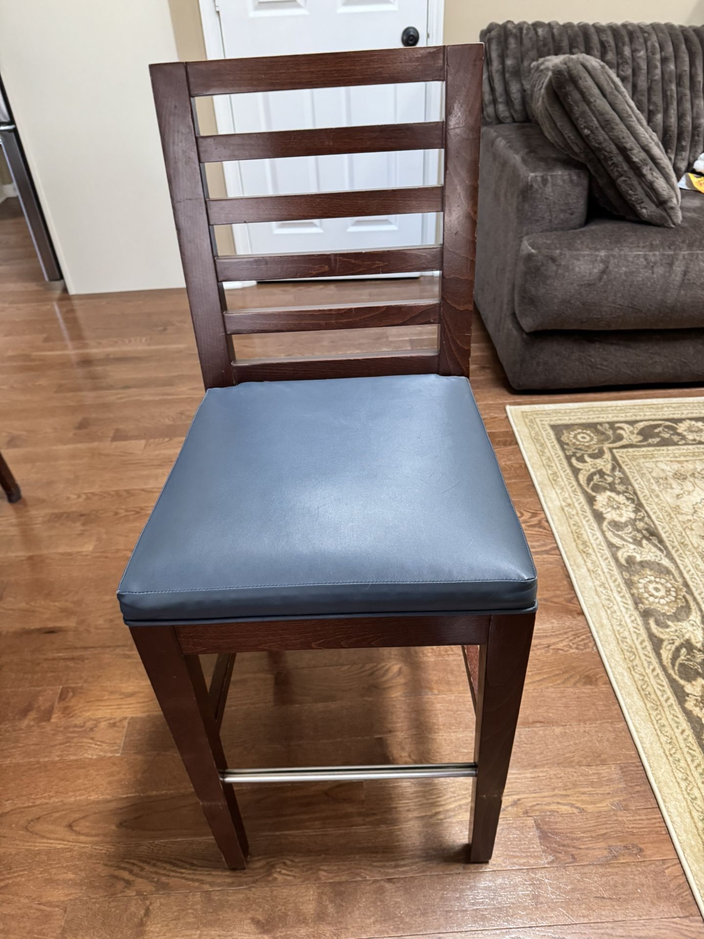 Solid Wood Counter Chair With Blue Leather Cushion