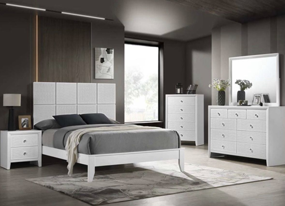 King $80 extra Chest $210 Bedroom Set 4pc $549 Dresser Mirror Nightstand (1) Queen size bed frame Not On Display All price Are Firm All sale is Final Brand new in box Pick up in Long Beach Delivery and assemble Extra Fee Monday to Friday 11am to6pm Saturday open 11am-4pm Sunday Close 1230 E Anaheim St Long Beach Ca 90813