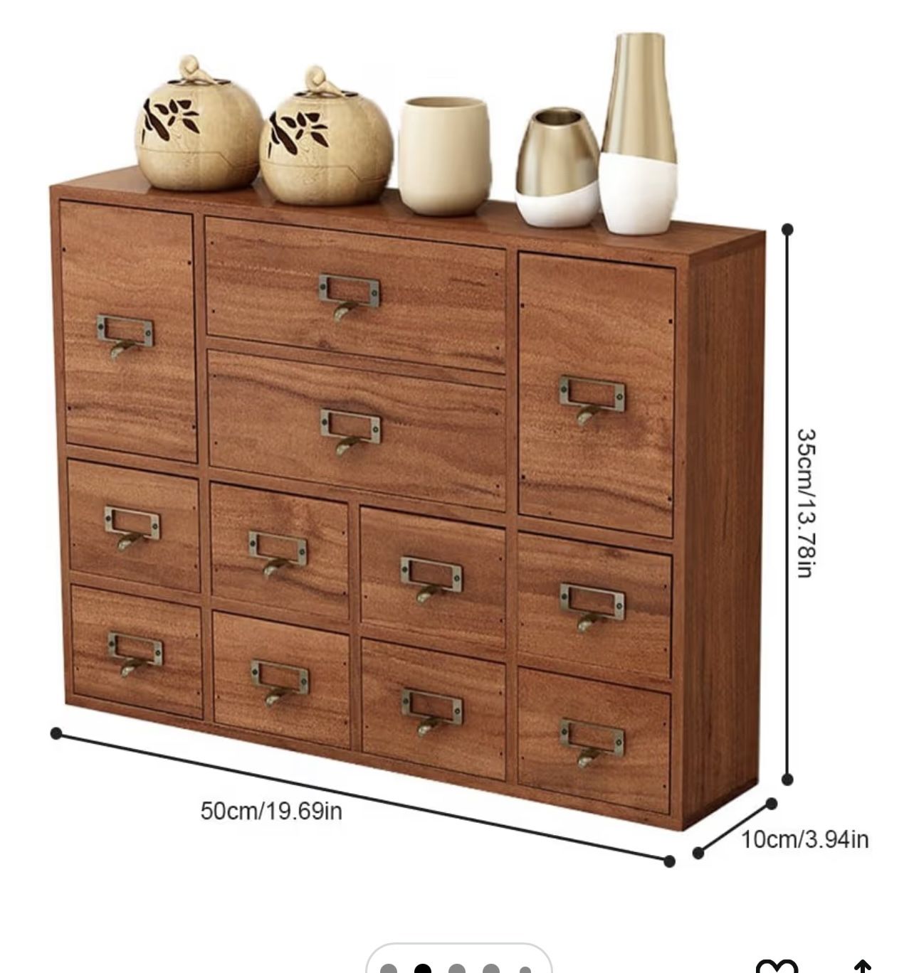 12 Drawers Library Card Catalog Cabinet with Tag Slot and Metal Handle,Wooden Storage Box,Vintage Apothecary Cabinet,Desk Drawer Organizer for Home Office Bedroom