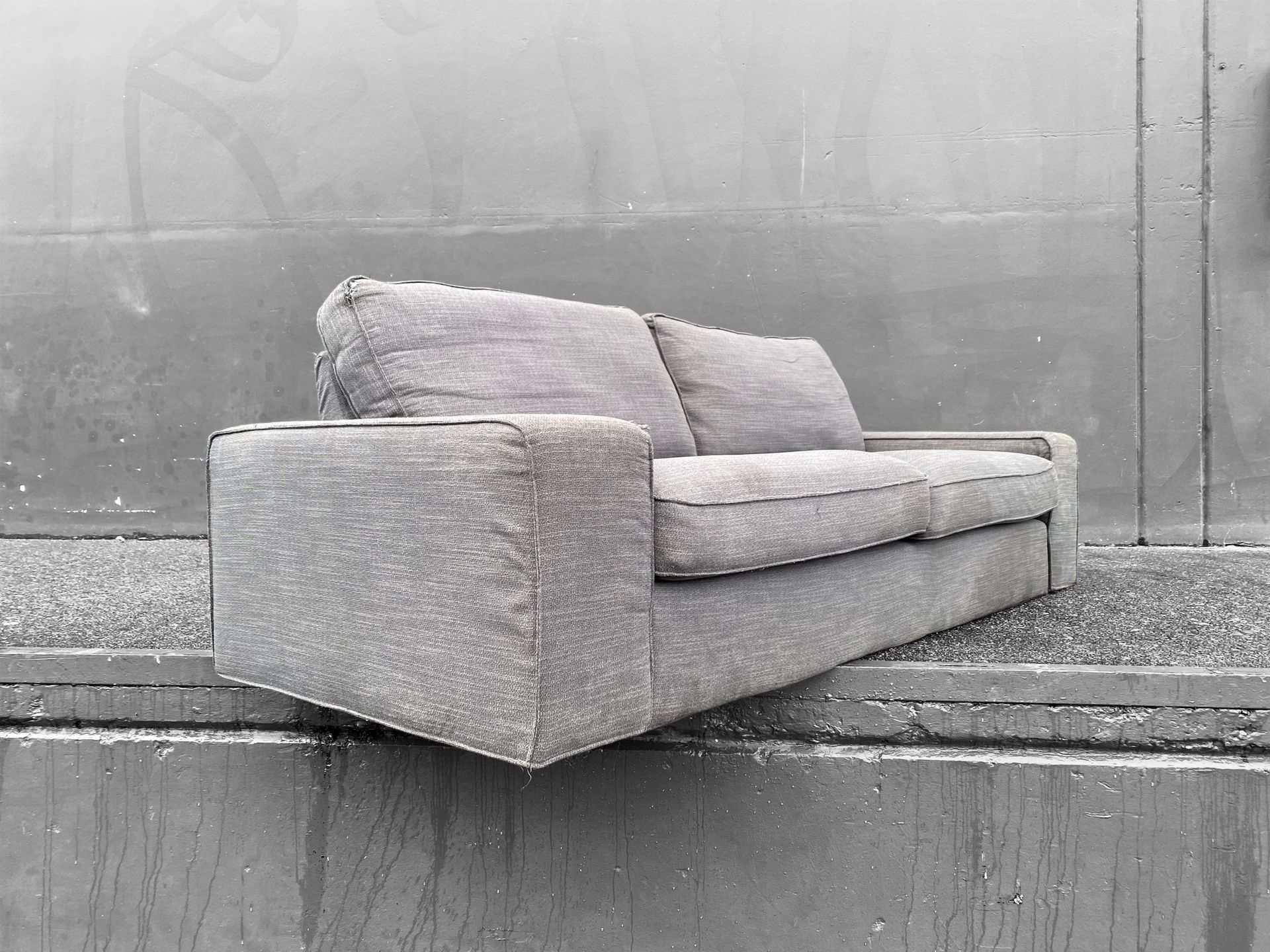 Length 7’ 4” Depth 2’ 10” Rear Height 2’ 6” Seat Height 1’ 4” It got a little bit wet in transport, but it was only liquid sunshine and give it a day or two and will be good to go