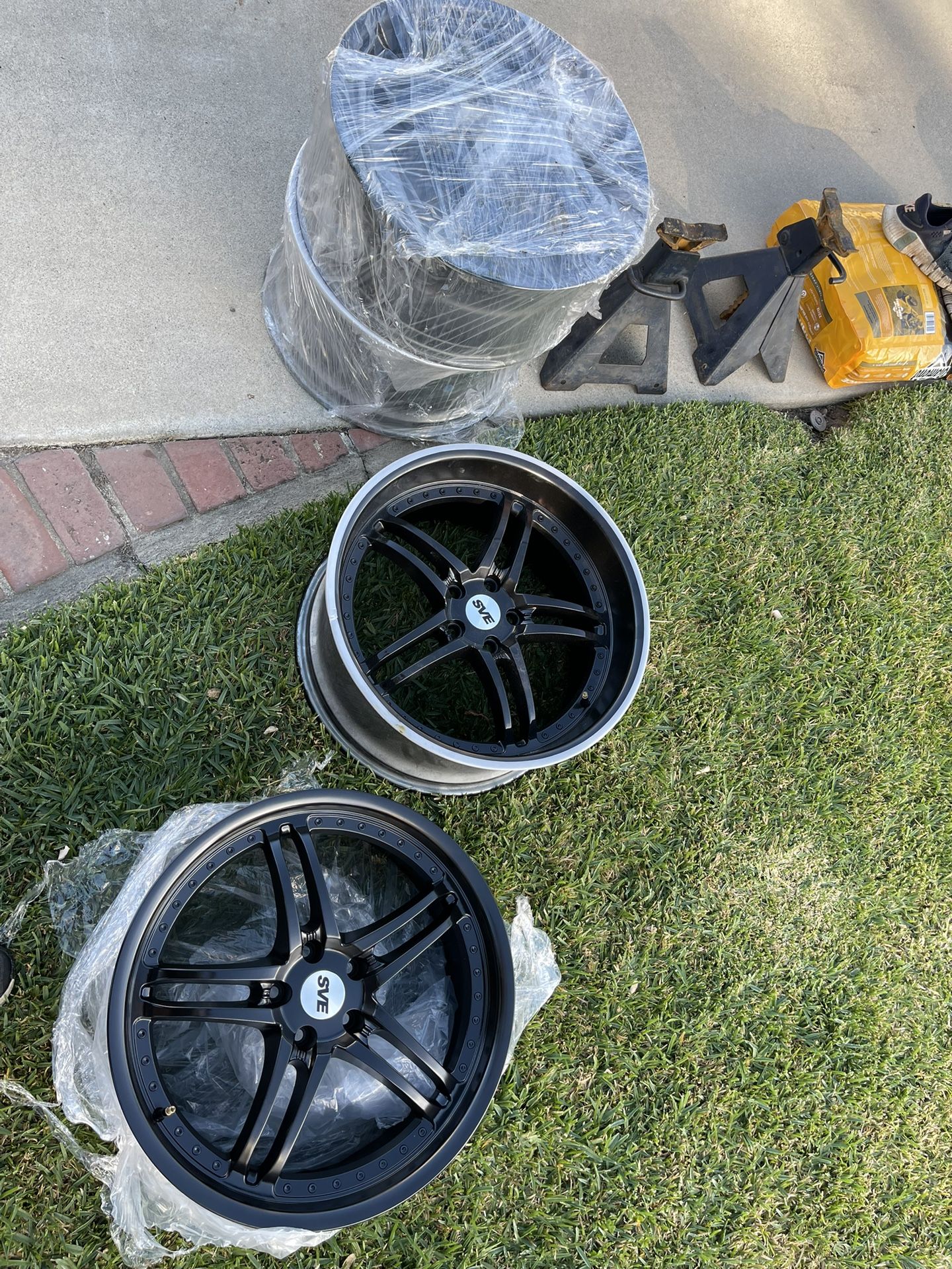 I have a set of clean SVE wheels no dents cracks or welds still have Mustang oem sensors light weight shoot me REASONABLE offers!! Mustang parts new edge cobra s550 5x114 foxbody 20 wheels rims tires