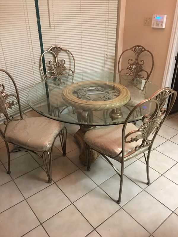 Glass top 4 chairs The chairs were covered with plastic when purchased so no stains on cloth (still have plastic on) $400 obo