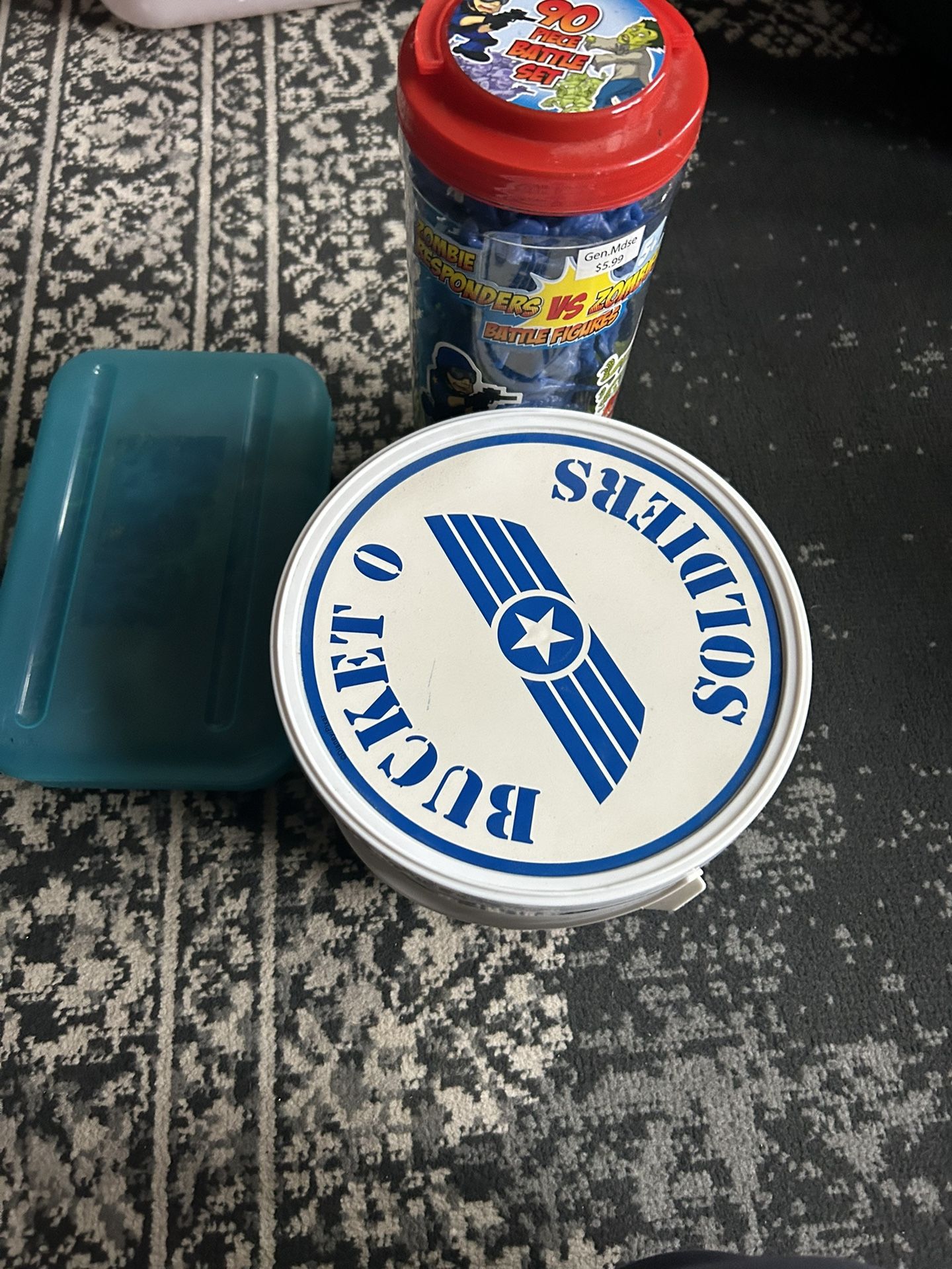 3 containers as pictured of toy soldiers.