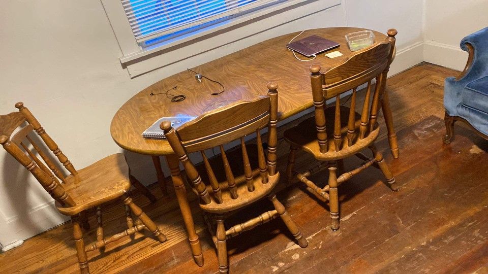 Selling a table because the place we moved into already has one. It's 4ft but goes up to 6ft with the leaf! It comes with 4 chairs, but the last chair is not pictured because someone was using it. It's really nice and was used properly, but has been loved. If you can pickup by tomorrow night $105