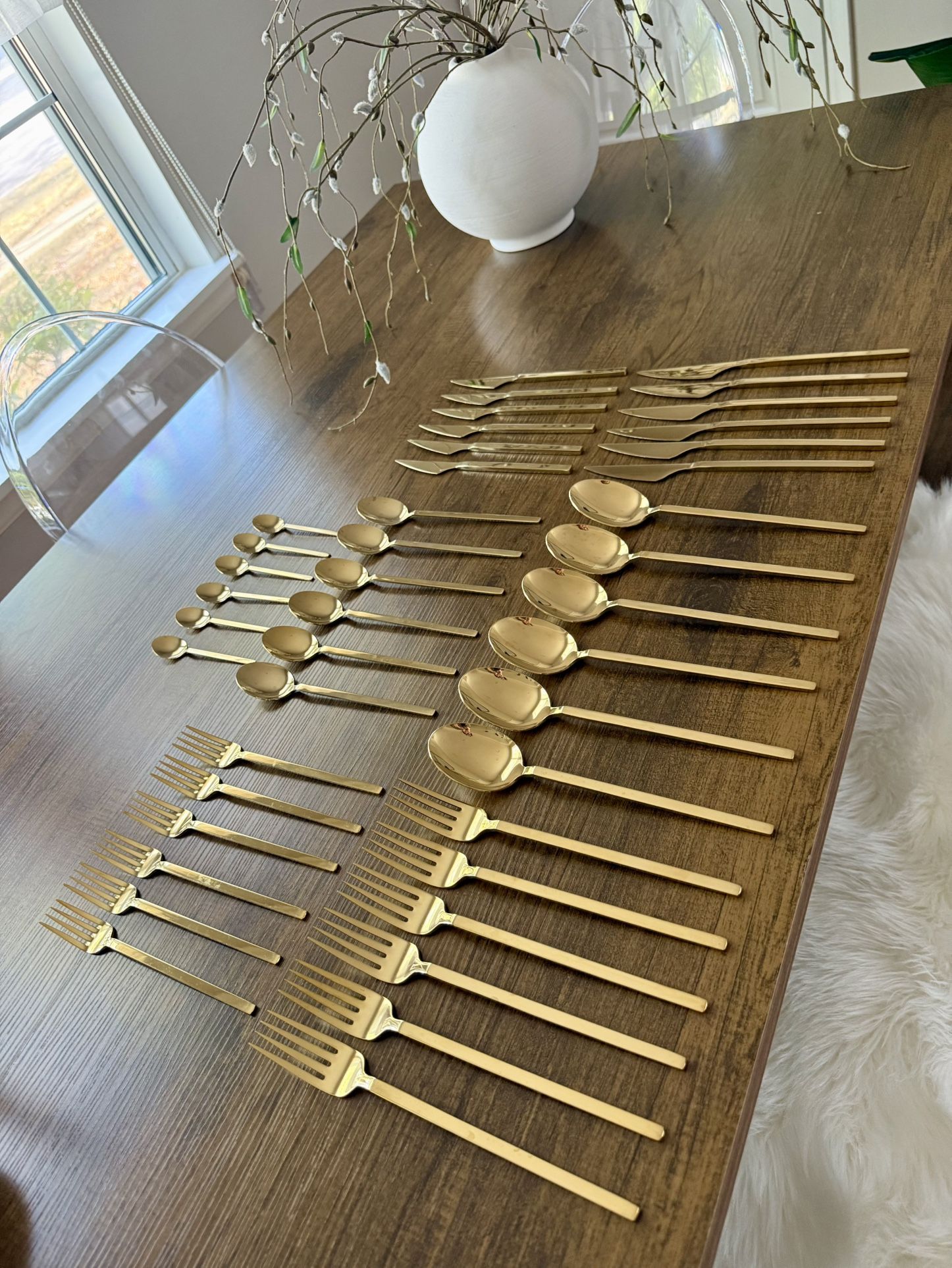 Like new, Only used a couple of times. 6 dinner spoon 6 dessert spoon 6 tea spoon 6 dinner fork 6 salad fork 6 dinner knife 6 dessert knife