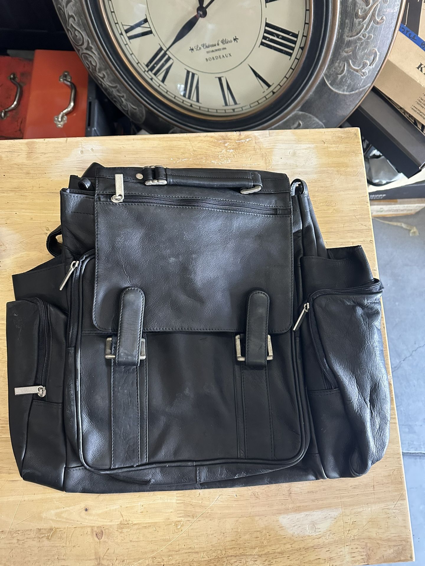 Soft leather black back pack. Magnetic latches on front. Plenty of storage