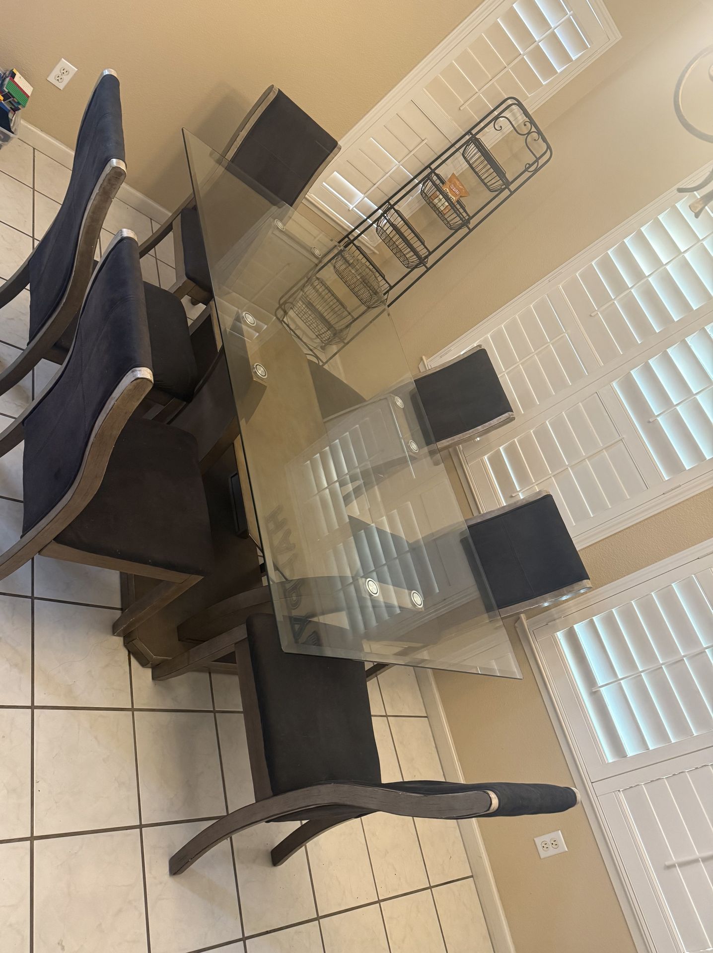 Dining Table with 6 chairs. Has a scratch on the bottom wood but doesn’t affect anything. NO TRADES