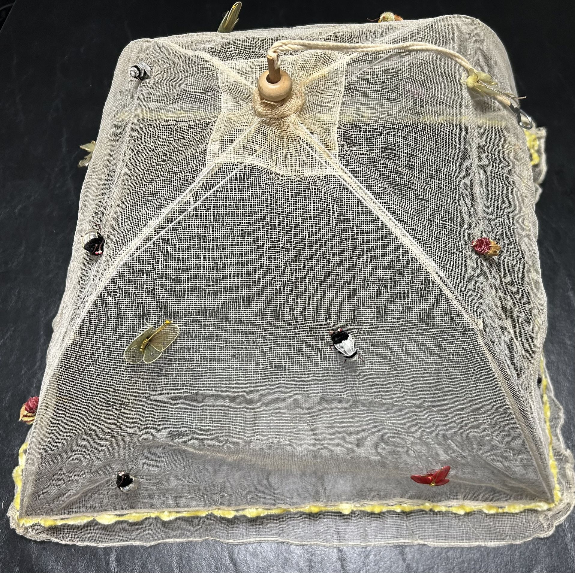 Charming and functional, these vintage mesh food covers add a touch of whimsy to any picnic or kitchen setup. Each cover features colorful embroidered insects and flowers for a fun, retro look. • Set of 3 (pink, yellow, green) • Lightweight and collapsible • Great for keeping bugs off food during outdoor meals Condition: These are vintage items with some signs of age—there is light discoloration and a few small snags in the mesh, but they still work well and look adorable. $30 for the full set of 3.