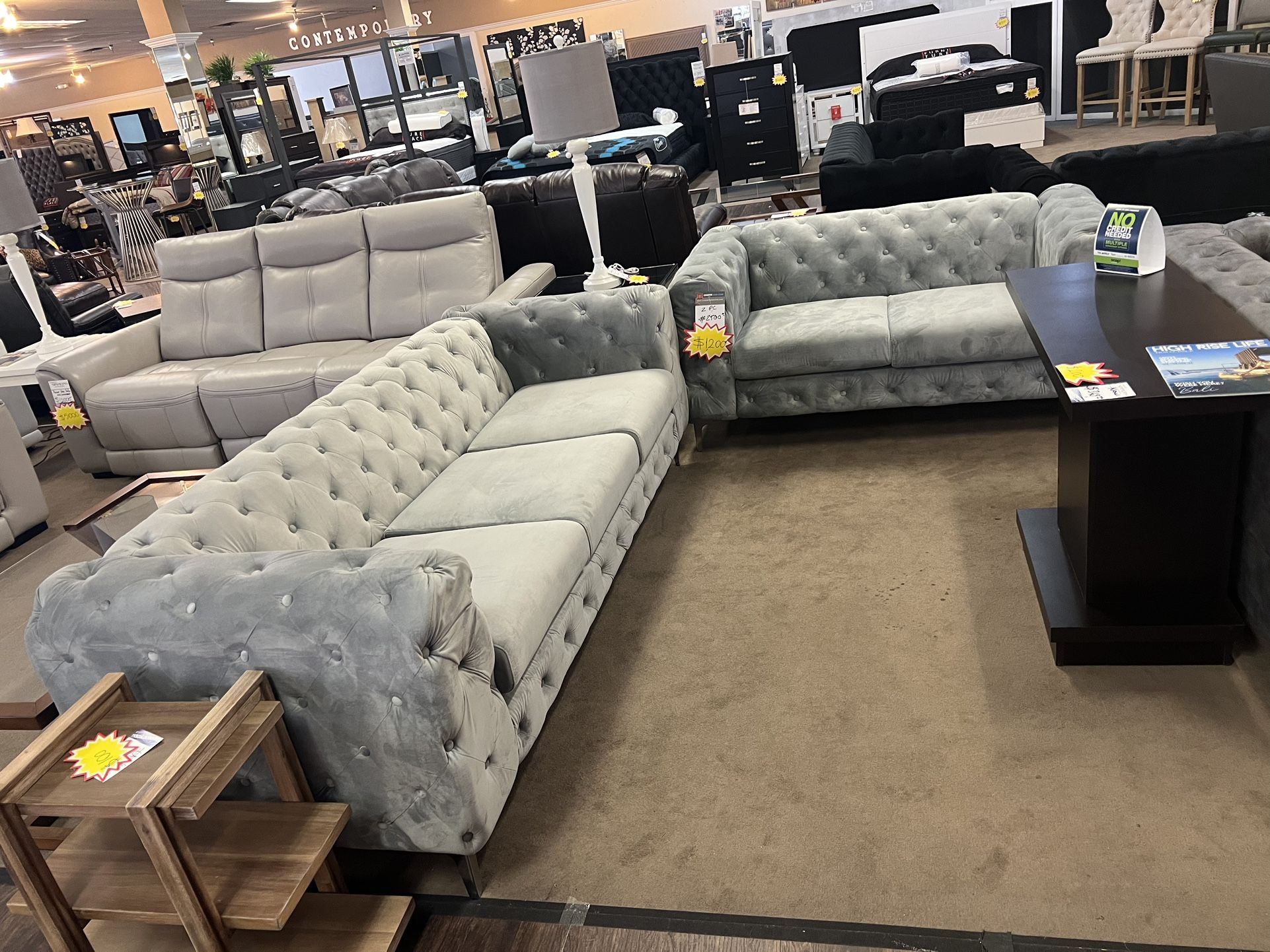 2Pcs Set Grey Velvet Sofa & Loveseat 🔥Store Closing Liquidation