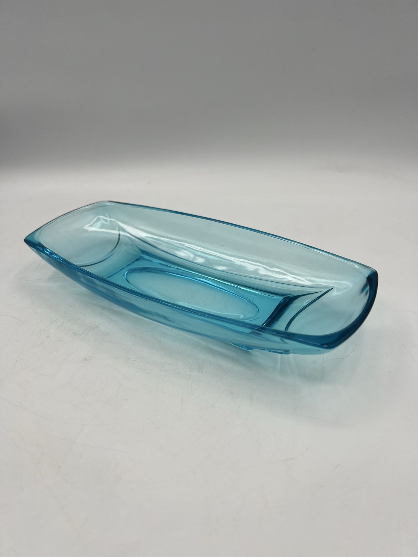 Vintage 1960s Hazel Atlas Glass Capri Blue Colony Celery Relish Dish MCM