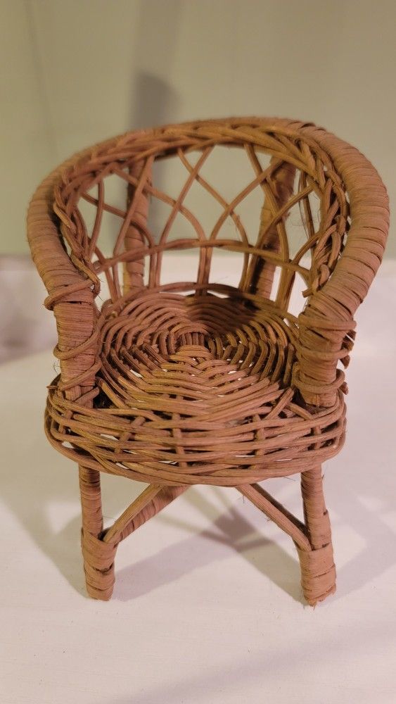VINTAGE WICKER 5"H CHAIR FOR DOLLS OR DECORATION