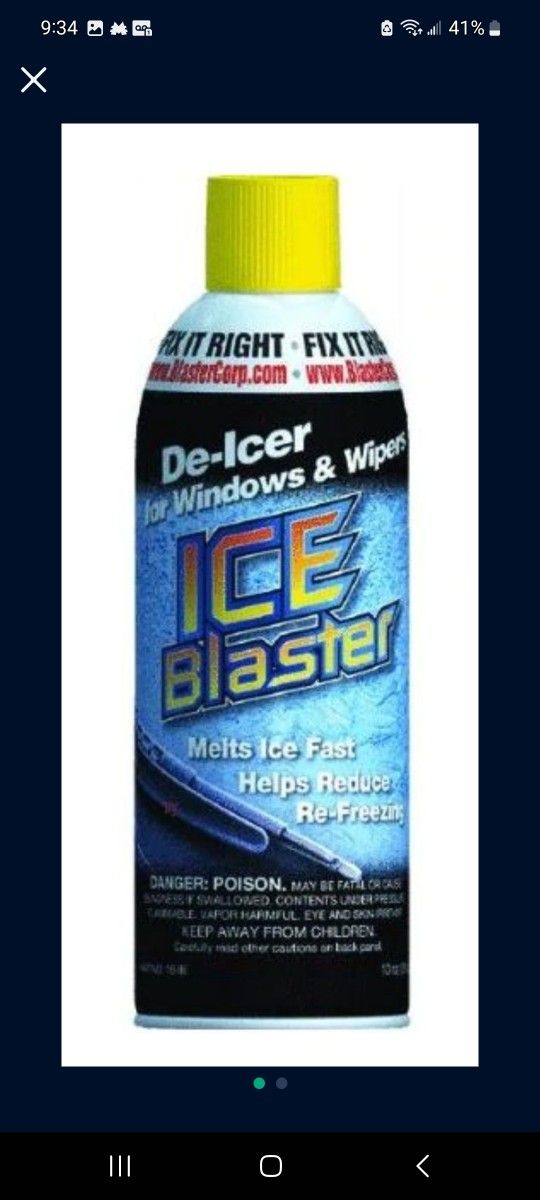 10 oz. Ice Blaster De-Icer for windshields melts ice on contact. Location: GOODYEAR