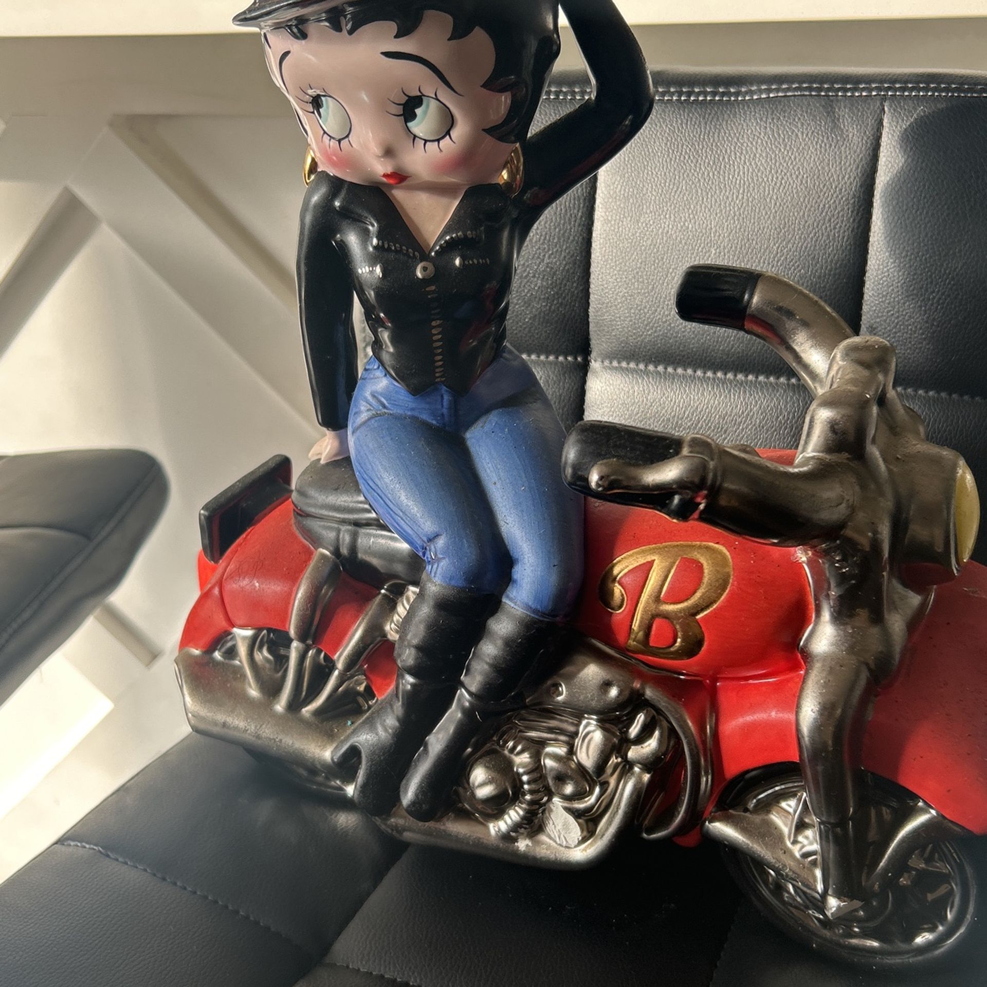 STUNNING BETTY BOOP "BIKER" COOKIES JAR. 14½x13” VERY UNUSUAL. RETIRED