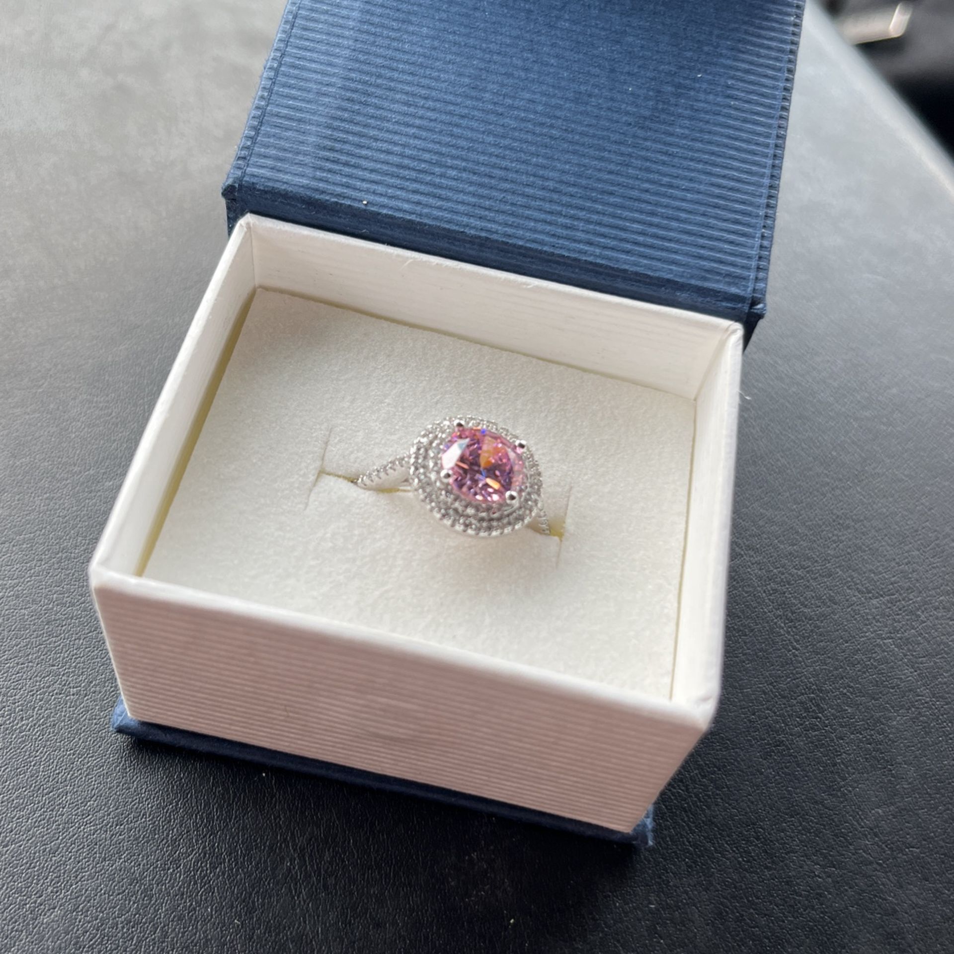 Pink sapphire ring - lab created Size 7 Beautiful NEW 925 sterling silver ring Does say made in china but I have had it tested where I used to work and it is solid sterling silver . Great gift just in time for Valentine’s Day!