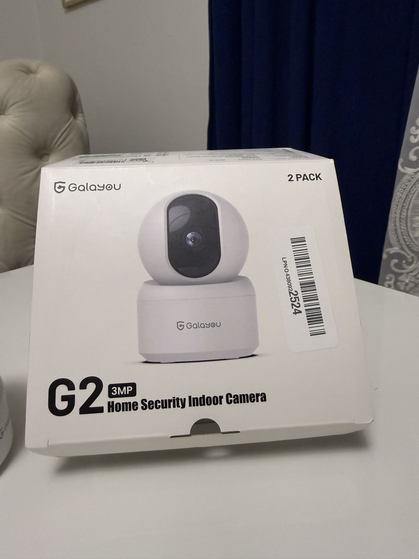 Galayou G2 3MP (2K) Indoor Security Camera Resolution: Delivers 2K Ultra HD resolution. Coverage: Features 360° coverage (355° horizontally and 52° vertically) via a mobile app. Features: Includes enhanced night vision, two-way audio, intelligent motion detection, and an alarm. Storage: Supports SD card storage (not included) or cloud storage. Compatibility: Works with 2.4GHz Wi-Fi and is compatible with Alexa and Google Assistant.
