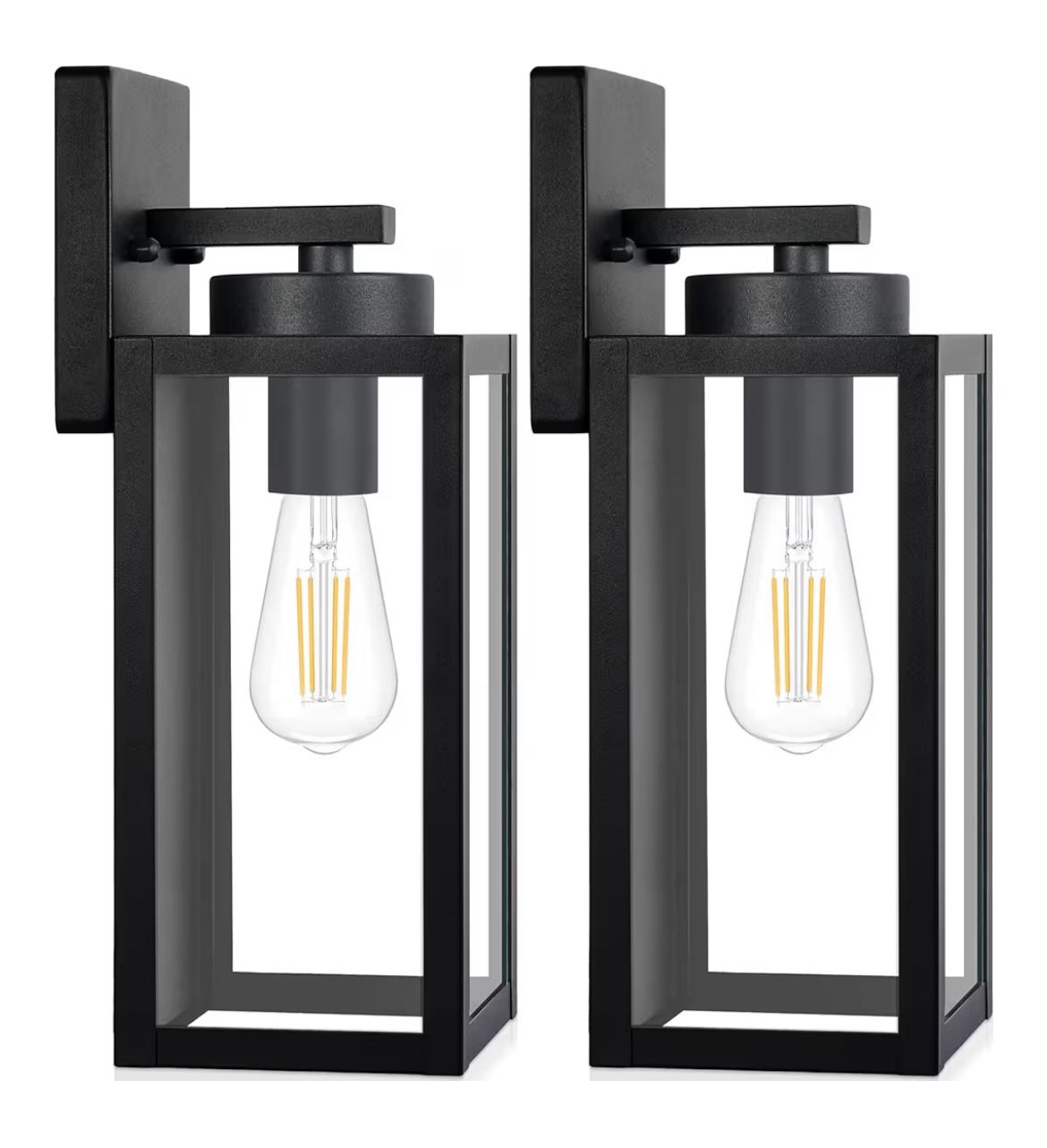 Outdoor Wall Light Fixtures, Exterior Waterproof Wall Lanterns, Porch Sconces Lighting with E26 Sockets & Glass Shades, Modern Matte Black Outside Lights for Patio Front Door Entryway Garage, 2-Pack