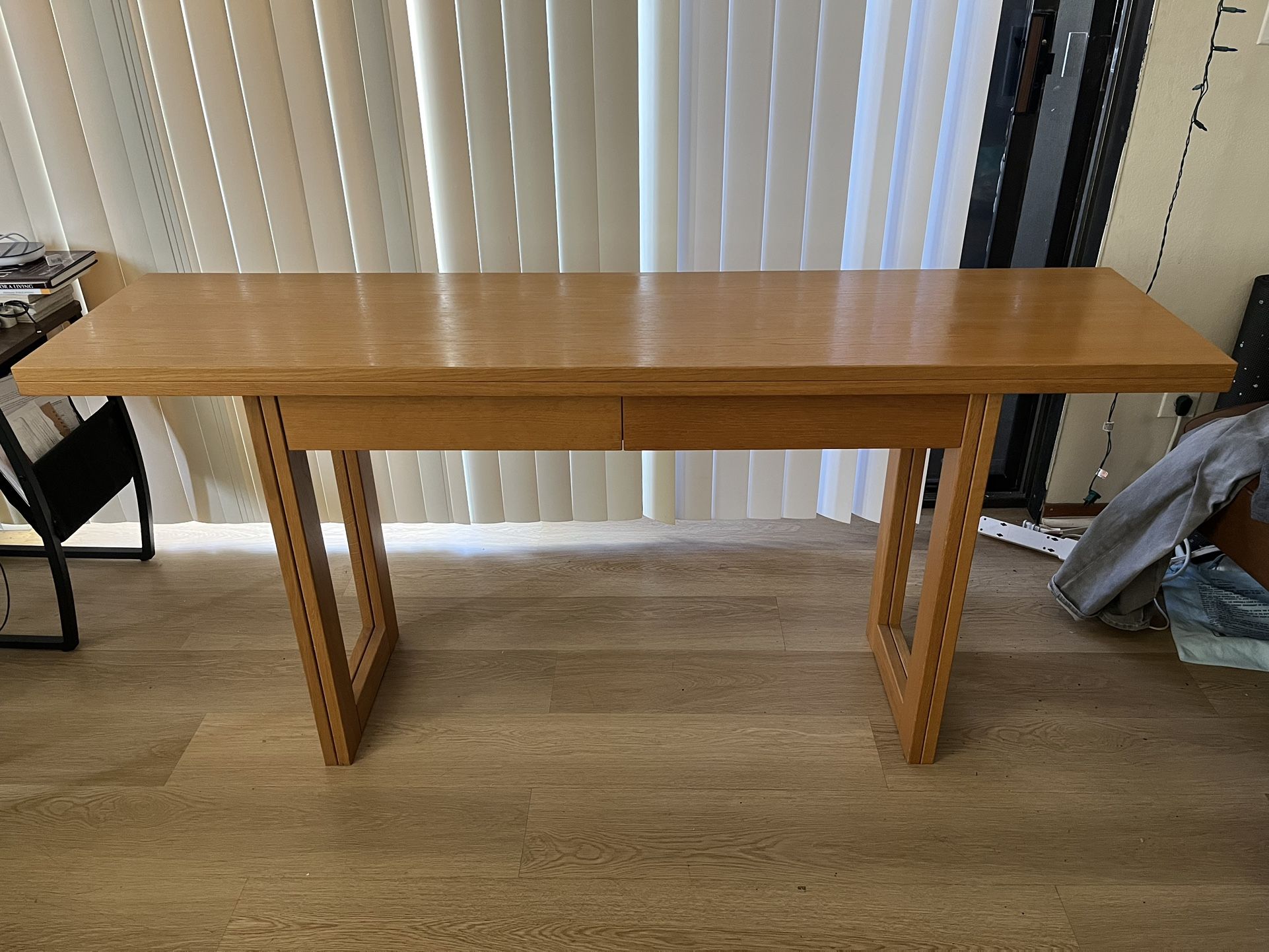 Convertible/extendable dining table or console with drawers Wood, like new, great for apartments and space saving Simple convertible design that gives it multiple potential uses: dining table, console table, bar top, etc $85 obo Check out profile for more dining and home items for sale! Offers and bundles welcome 🤗 Priority to first available pick up