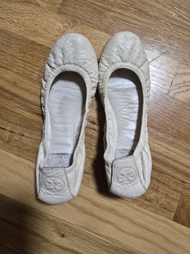 Tory Burch ballet flats. Structurally intact with recognizable branding. Worn soles. Women's Size 5 cream color Pick up near qfc at 1600 w dravus st Seattle. Cash or venmo