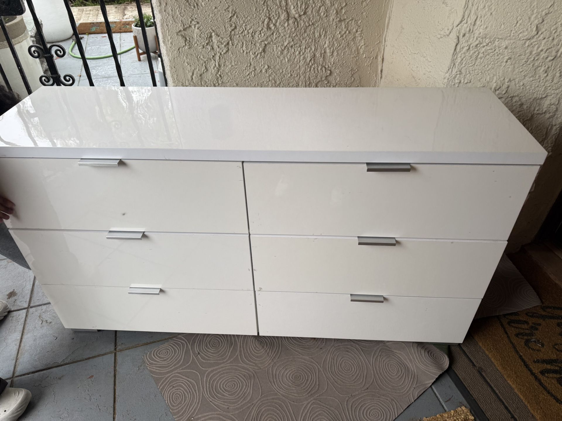 White six drawer IKEA dresser has very minor scratches that could be cleaned off sat in a room for three years unused would need a simple wipe down -- HEAVY 2 person lift - take as is—- CASH ONLY