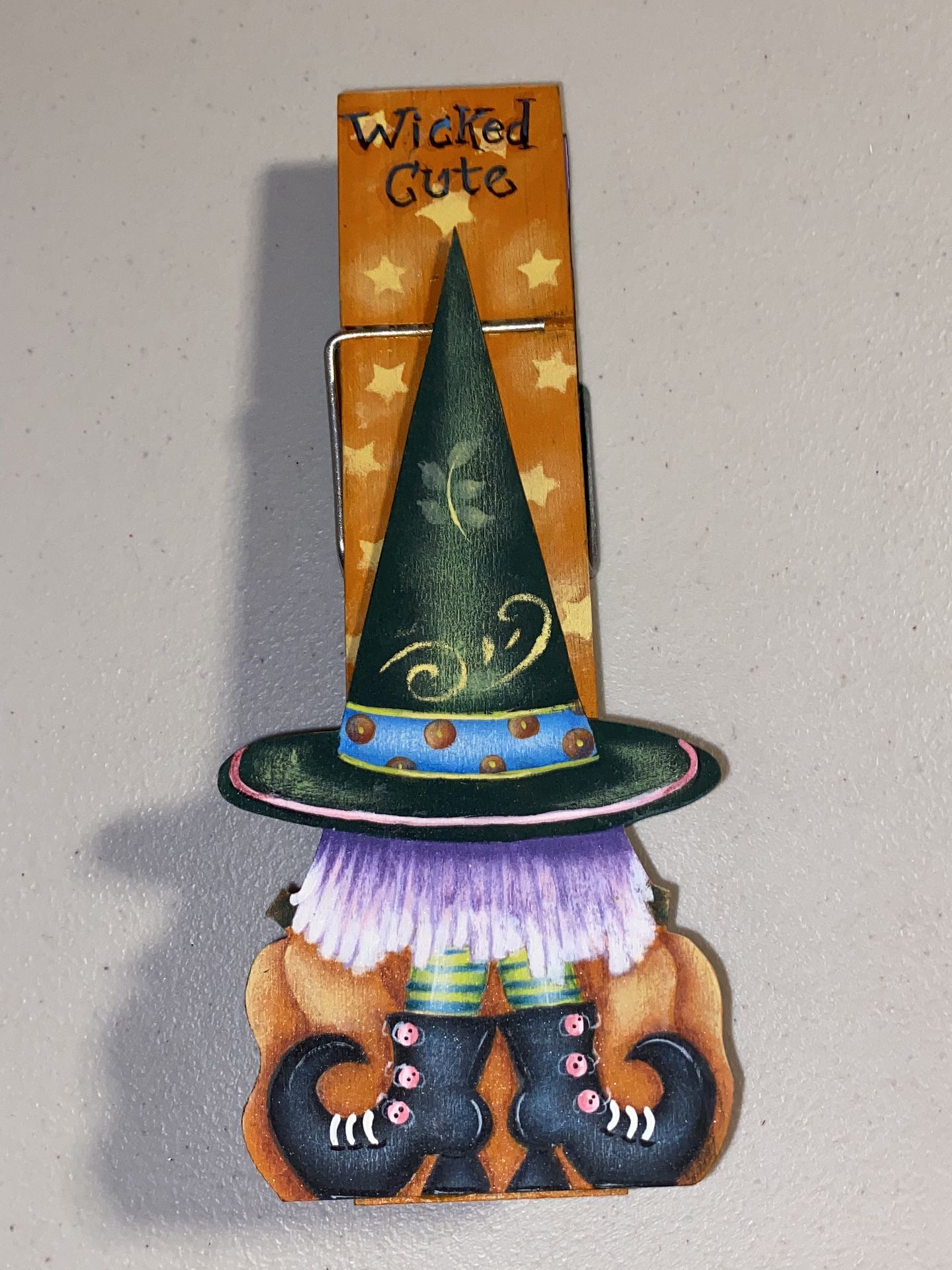 9” BIG Wood Hand painted paper clip wicked, cute Halloween witch