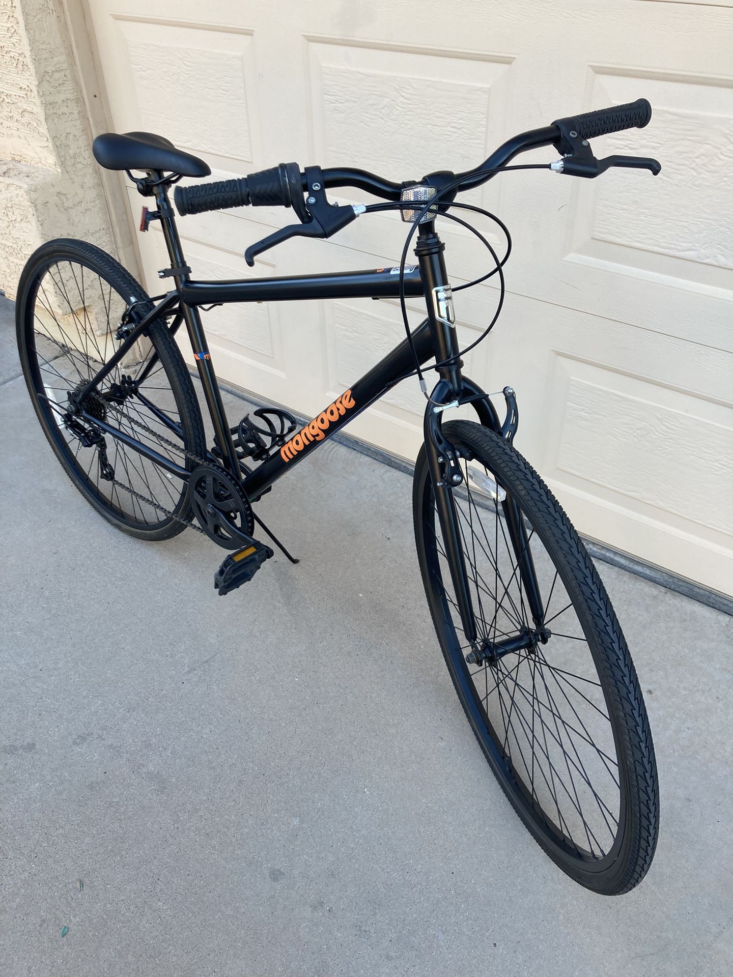 Mongoose Urban Hybrid Bike, 700c wheels, this bike fits riders 5'4" to 6'2" in height. Urban-style steel frame and fork. 7-speed twist shifters Front and rear linear pull brakes provide, alloy rims ready to ride tires and tubes and are great. Cash only thanks for looking.