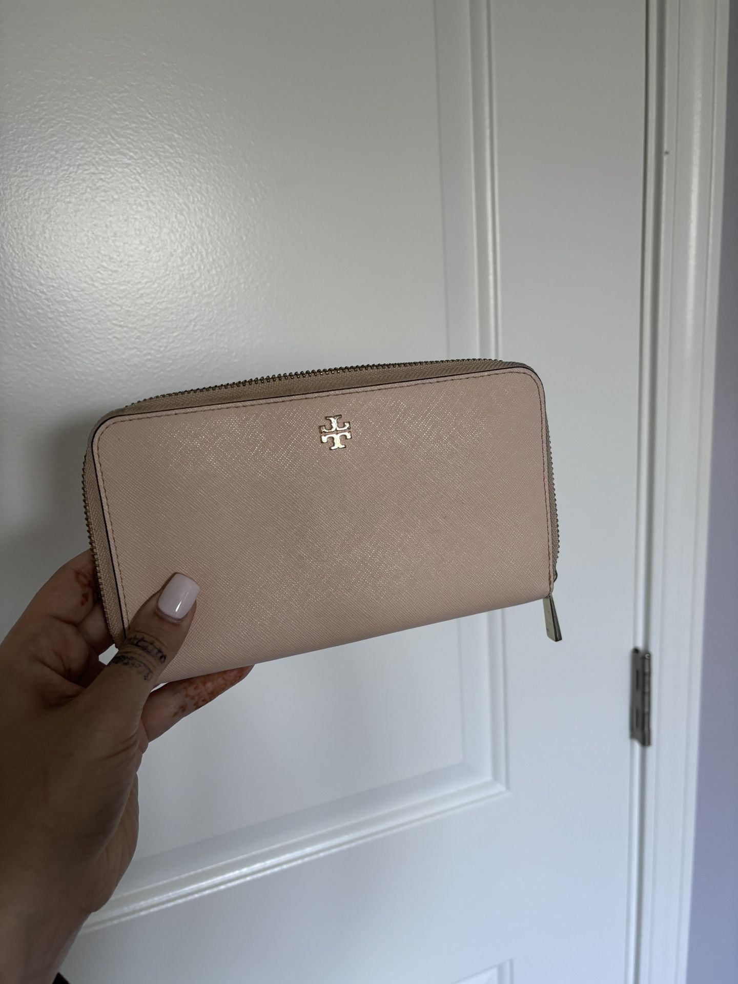 Authentic baby pink Tory Burch wallet. Excellent condition. Slight discoloration near zipper but barely noticeable. Beautiful but i don’t use it anymore!
