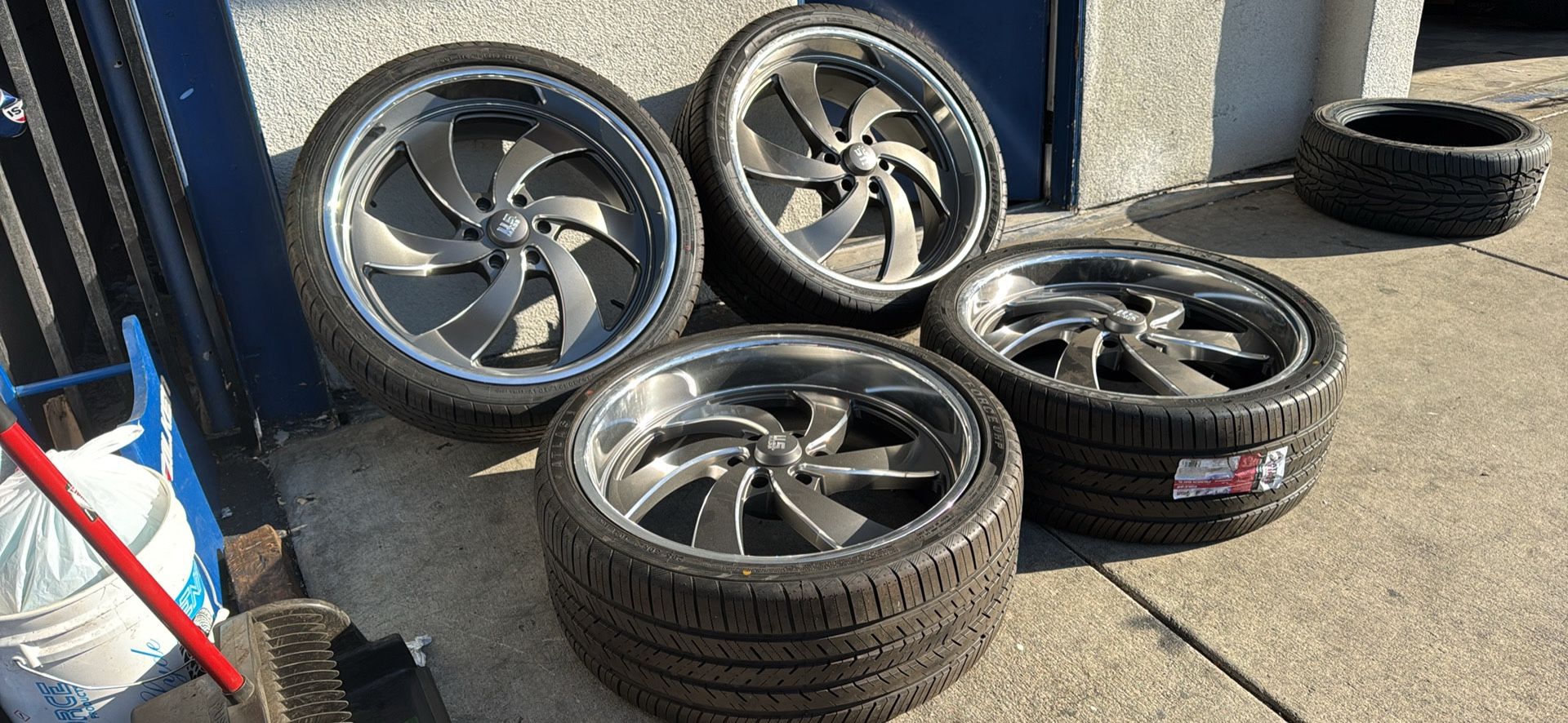 RIMS US MAGS 24” STAGGERED BOLT PATTERN 6x5.5 TIRES 295/30/24 NEW FINANCE AVAILABLE CHEVY TAHOE YUKON DENALI GMC SIERRA CADILLAC ESCALADE