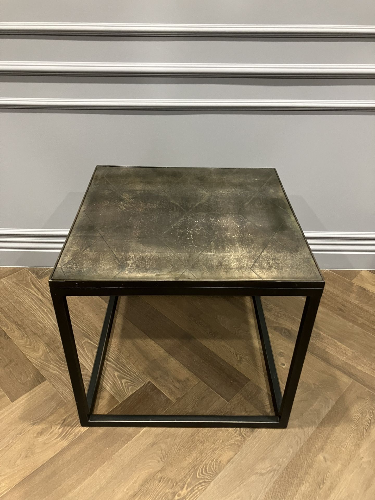 Selling a Stunning Metal Parquet Side Table from RH! Dimensions: 24"W x 24"D x 22"H. 🔹 Condition: Some minor scratches from normal wear (see pictures), but overall in excellent condition - very sturdy! 💰Paid $750+. Asking price: $200. For more details, visit the RH website (let me know if you need the link). Feel free to reach out with any questions!