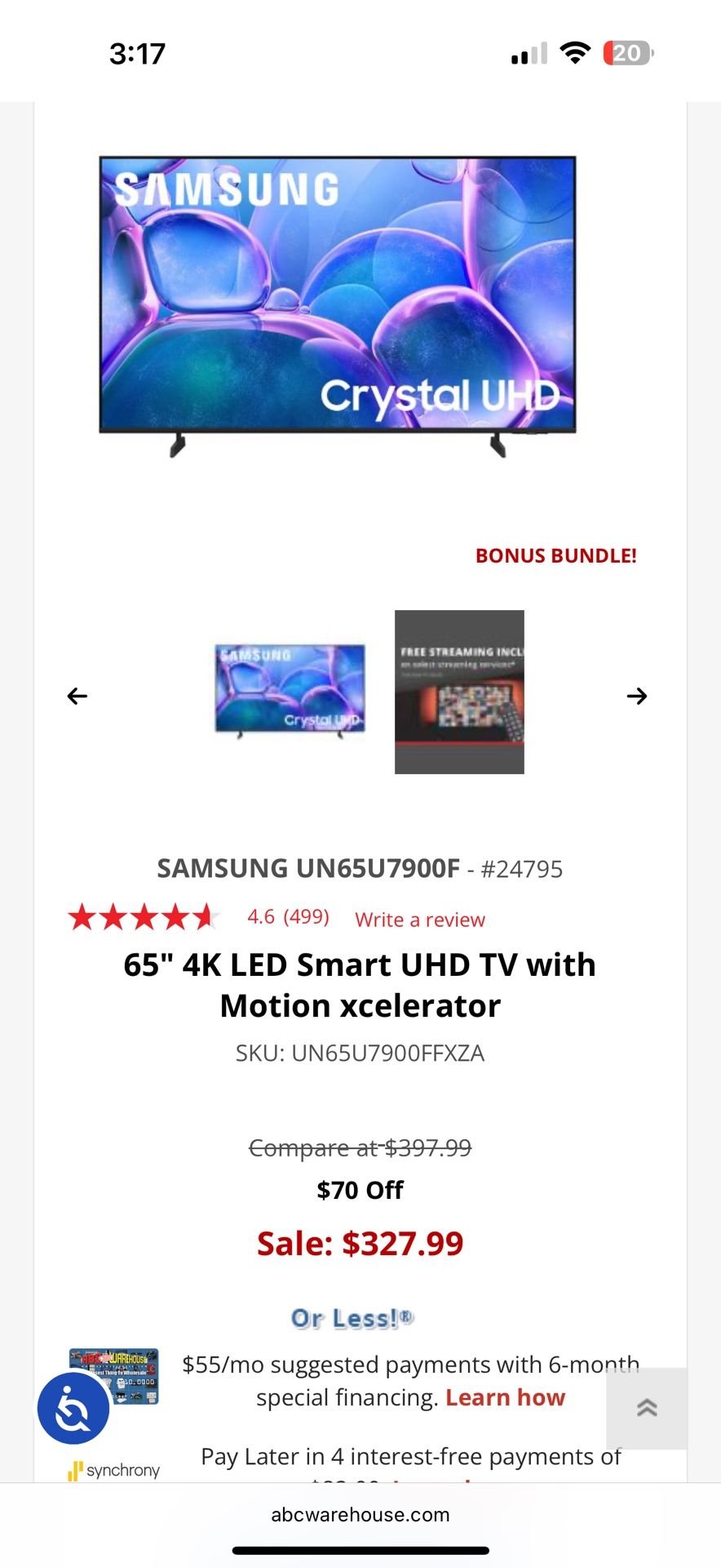 65" 4K LED Smart Samsung UHD TV with Motion xcelerator