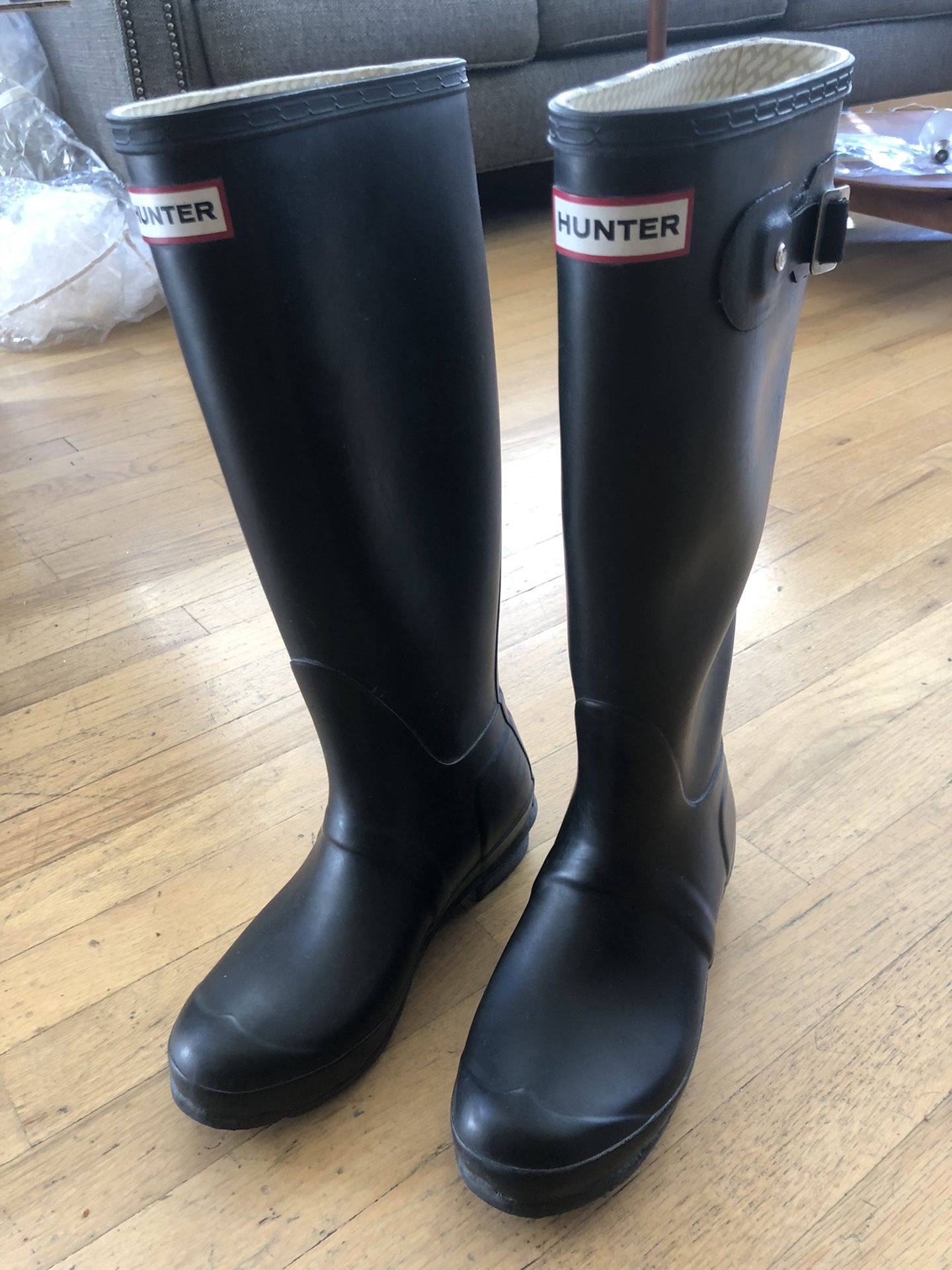 Lightly worn tall Hunter rain boots