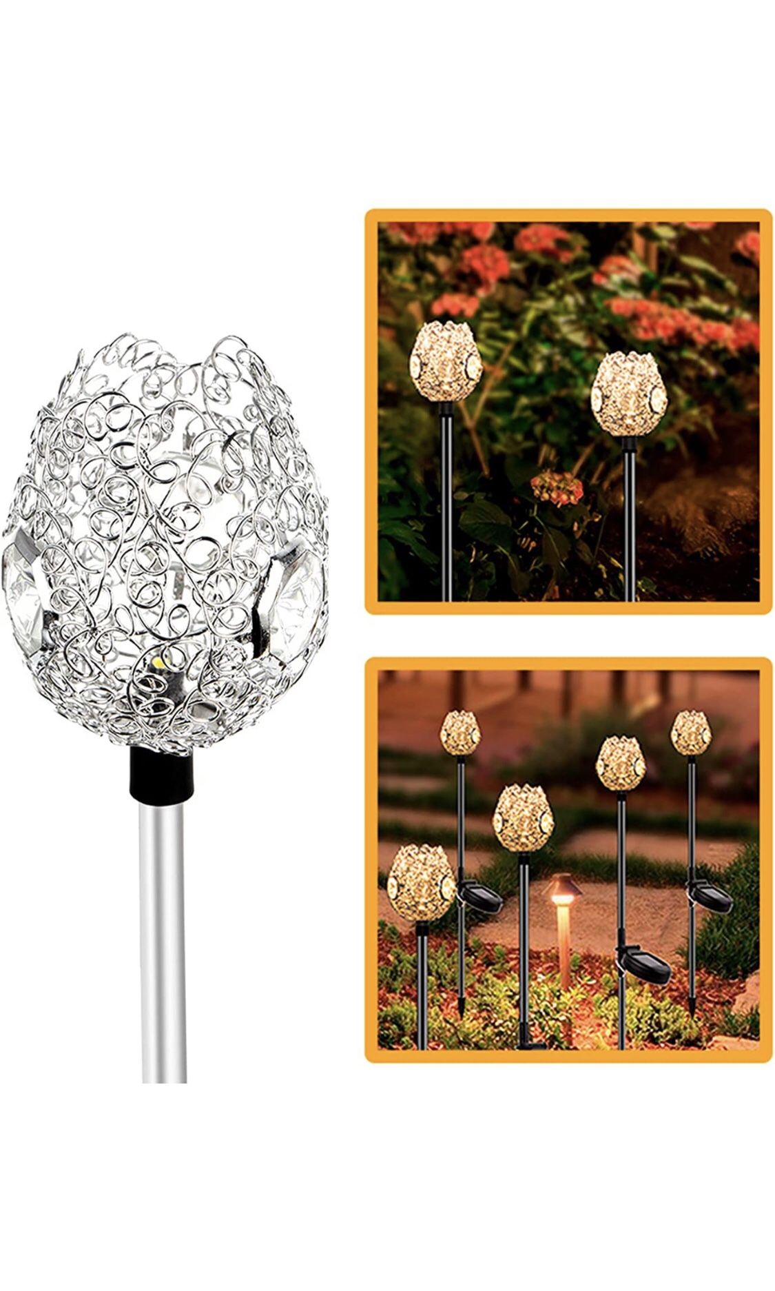 LED Flower Lights Outdoor ,Waterproof Landscape Decoration Lighting,Warm White ,Beautiful Solar Flower Lights for Pathway Patio Yard Deck Walkway 2Pack