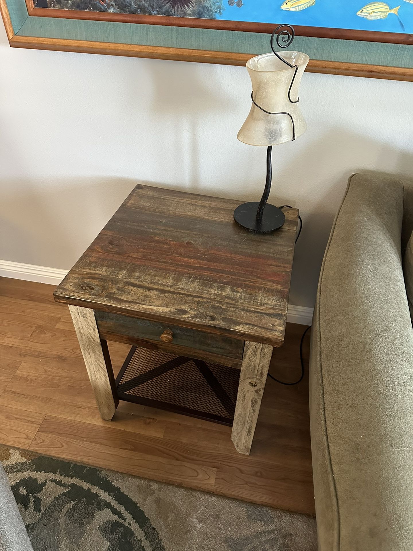 Matching Side and End Table; distressed/reclaimed wood style, great condition; solid wood