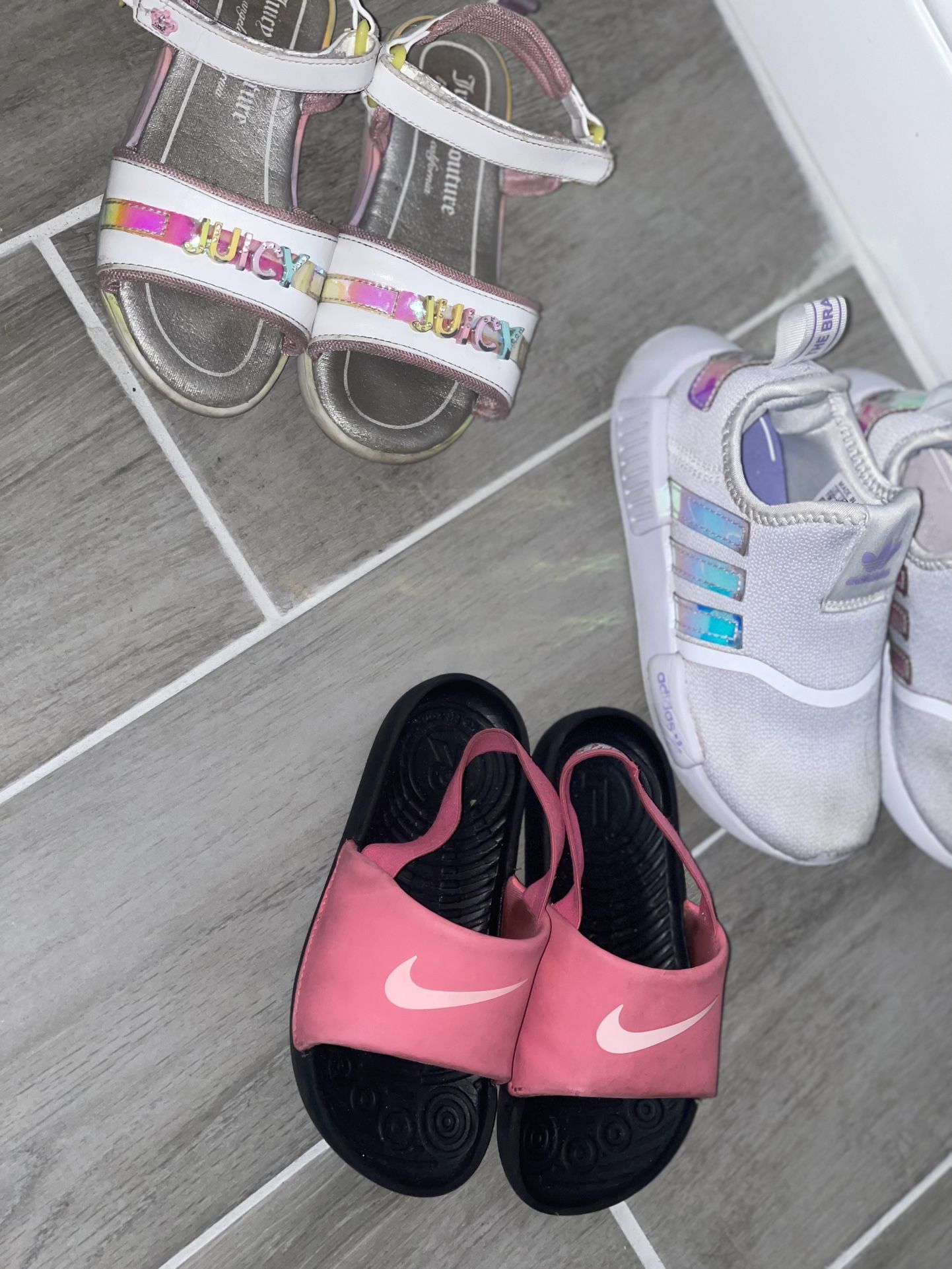 Girls Three Pairs Of Shoes Sneakers Sandals Adidas Nike Juicy