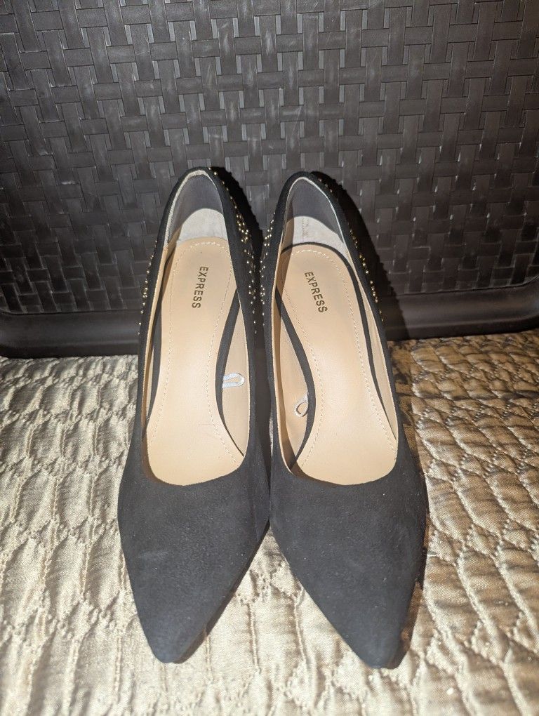 Black & Gold Suede Heels π