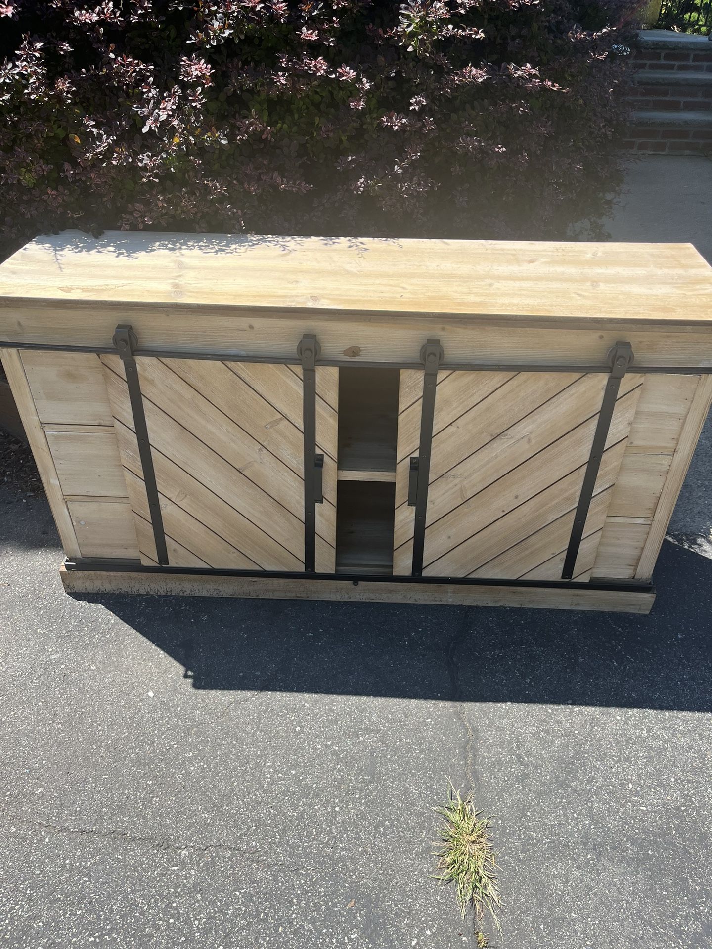 I bought it for $400. It’s a beautiful piece but I don’t have any space for it. It has 6 drawers and in the middle has two shelves.