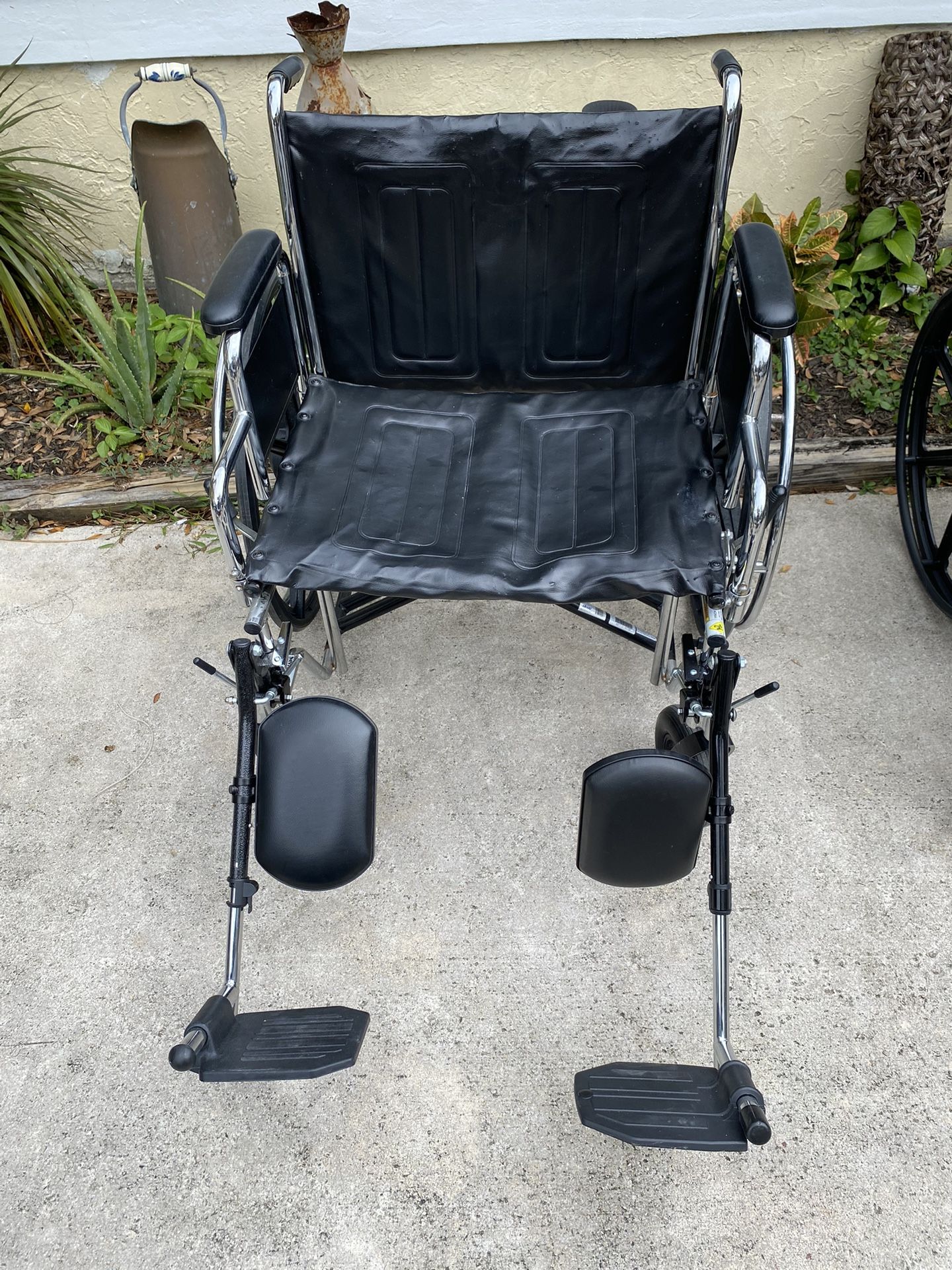 This is a real nice wheelchair made out of the DR. corporation 20 inches wide. It’s got a 370 pound weight limit and as the elevating leg rests if you need to bring your legs up just click up the foot breast. It goes up higher than the wheelchair and you can set them anywhere in between.