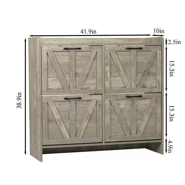 Shoe Storage Cabinet with 4 Flip Drawers, Freestanding Shoe Cabinet, Shoe Organizer with Wood Legs for Entryway, Slim Shoe Cabinet