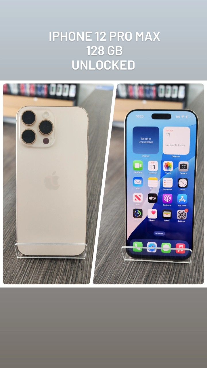 📱 iPhone 12 Pro Max Unlocked to any carrier Color: Gold Almacenamiento: 128 GB Estado: Usado Desbloqueado (Unlocked) Compatible con cualquier compañÃa Excelente rendimiento y cámara de alta calidad